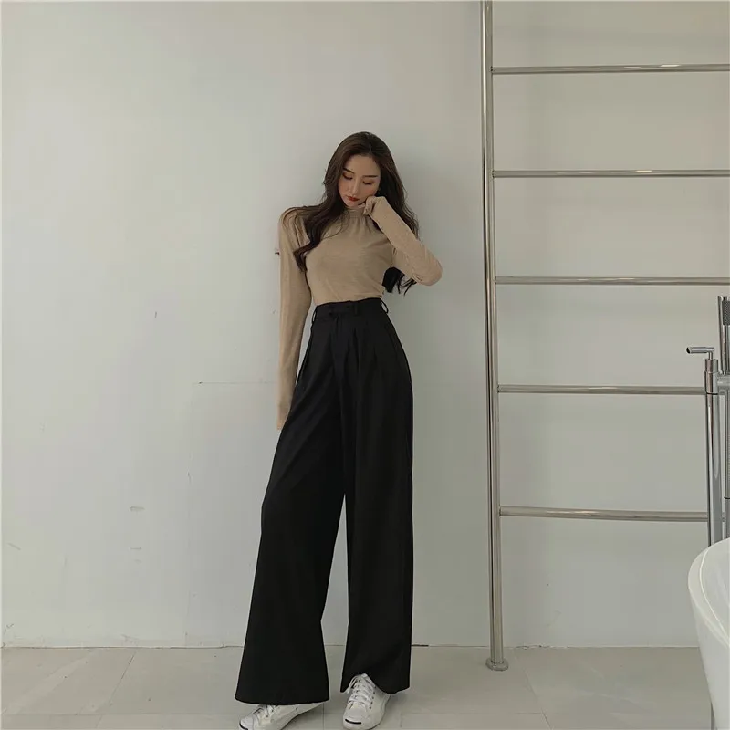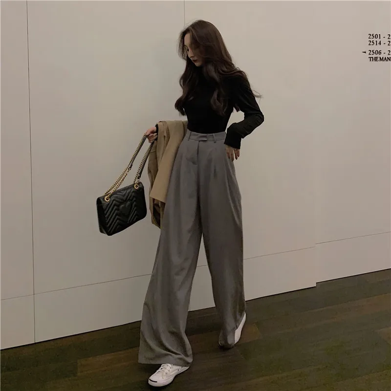 Брюки женские с широкими штанинами и высокой талией, Свободные повседневные капри в Корейском стиле, модные трендовые Капри для весны и осени, WA217