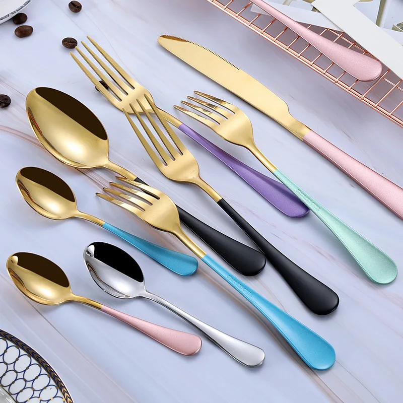 Черный золотой Стальной набор столовых приборов набор Европейской посуды портативная нержавеющая сталь кухонные вилки ложки Ножи Посуда Прямая поставка