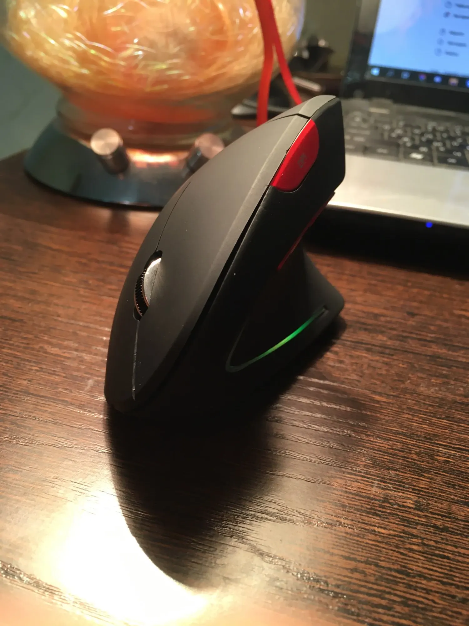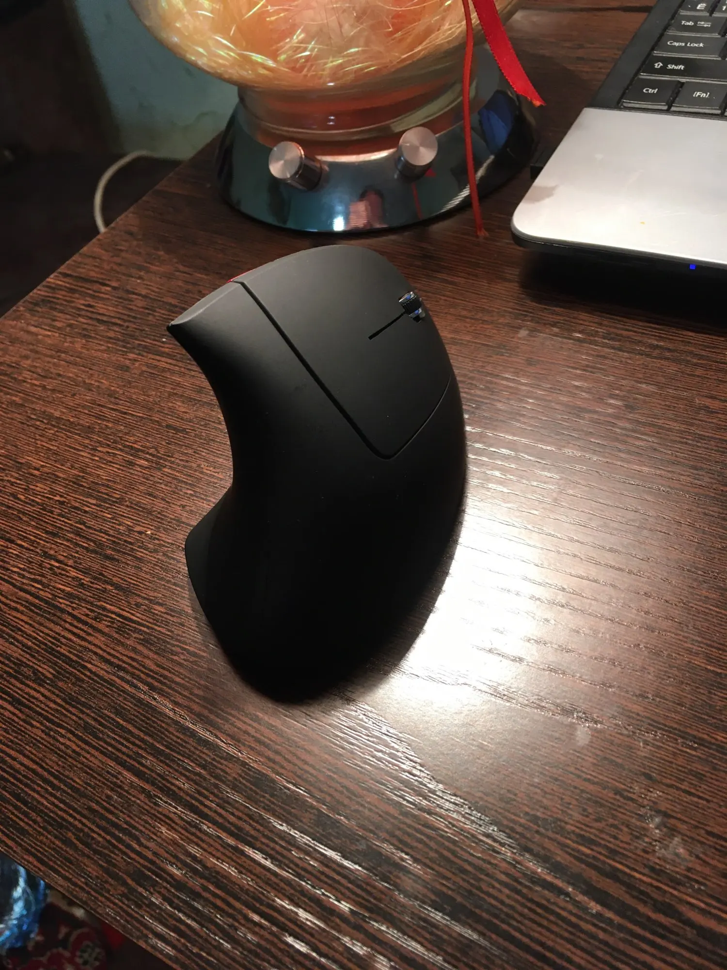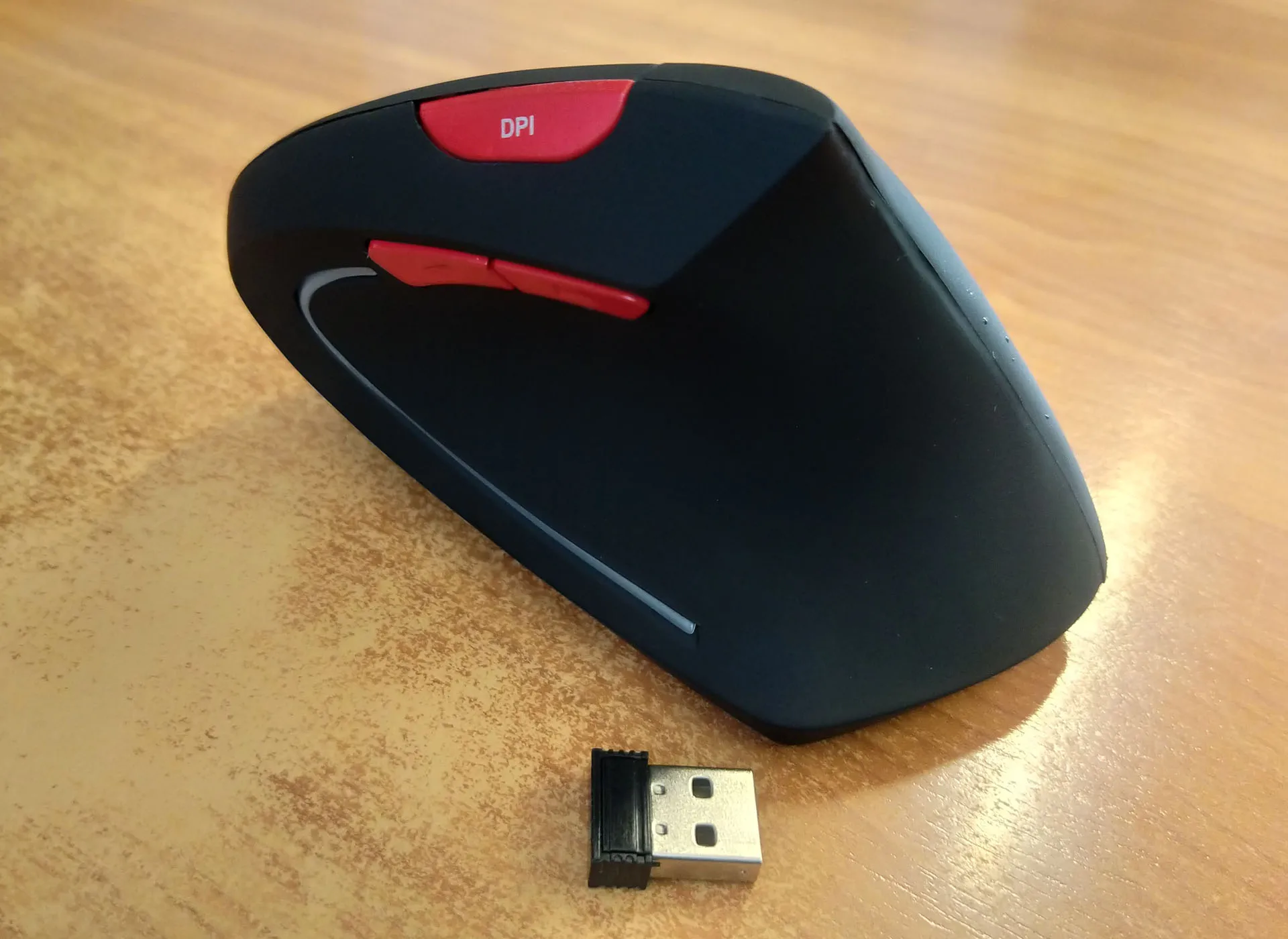 Товар пришёл в срок. Это моя первая вертикальная мышка. Мышь светодиодная, поэтому лучше использовать ее с ковриком. Моя модель немного люфтит, что вызывает дискомфорт. Не очень удобно нажимать на боковые клавиши. Учитывая цену мышки -600р, я ей очень доволен.