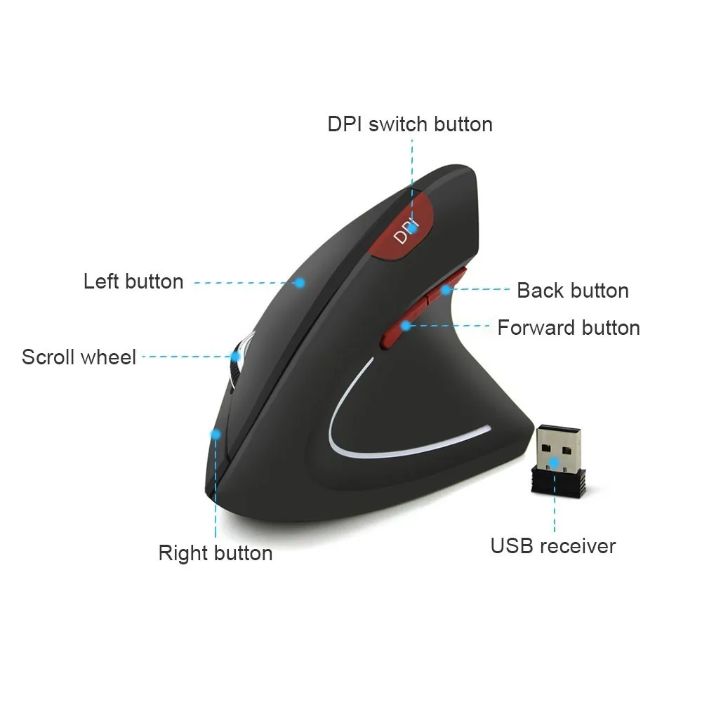 Вертикальная беспроводная эргономичная компьютерная мышь CHYI, красная, 1600DPI, оптическая, 6D, игровая мышь со светодиодный подсветкой, Usb, игровая мышь для ноутбука