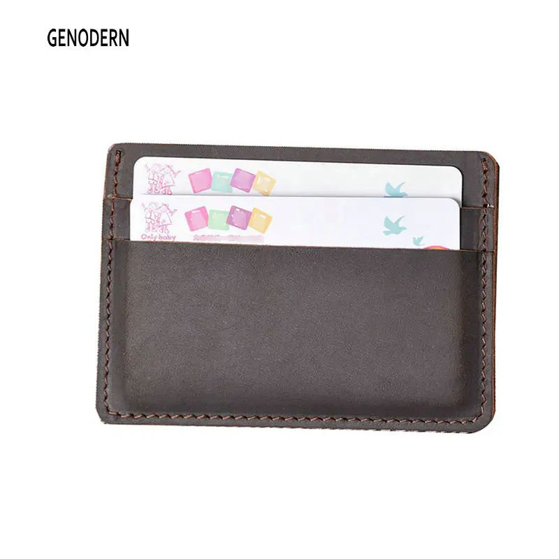 GENODERN винтажные мужские держатели кредитных карт Crazy Horse, кожаный деловой чехол для карточек унисекс, тонкий мужской бумажник