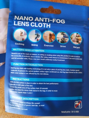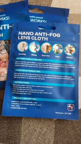 Работает,но вау-эффекта,конечно, нет. Стекла потеют меньше. После нескольких использований превращается в обычную салфетку для очков. По сравнению с обычными влажными салфетками - ну хоть не одноразовая.
