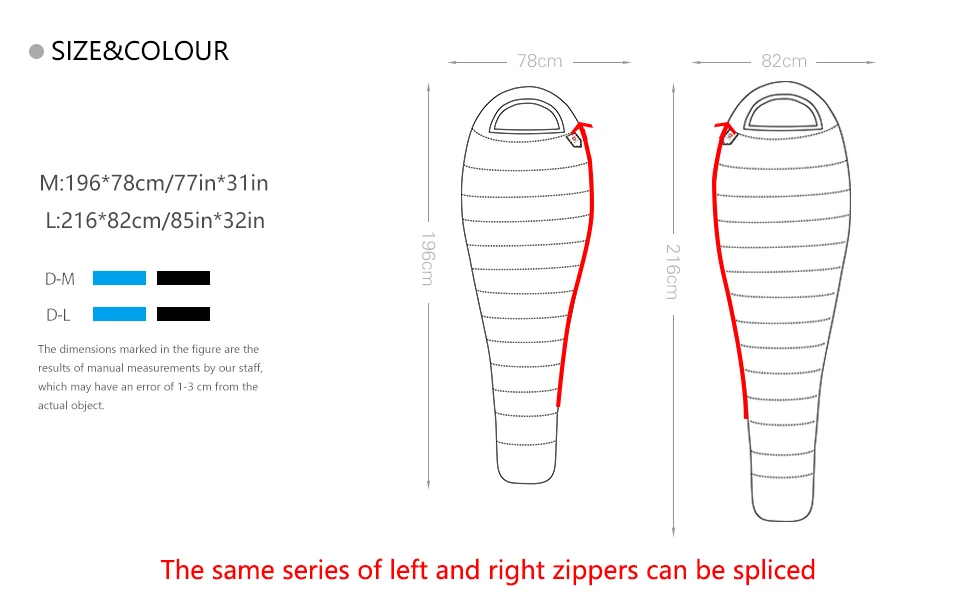 Размер спального мешка: м: 196x78 см/длина: 216x82см
