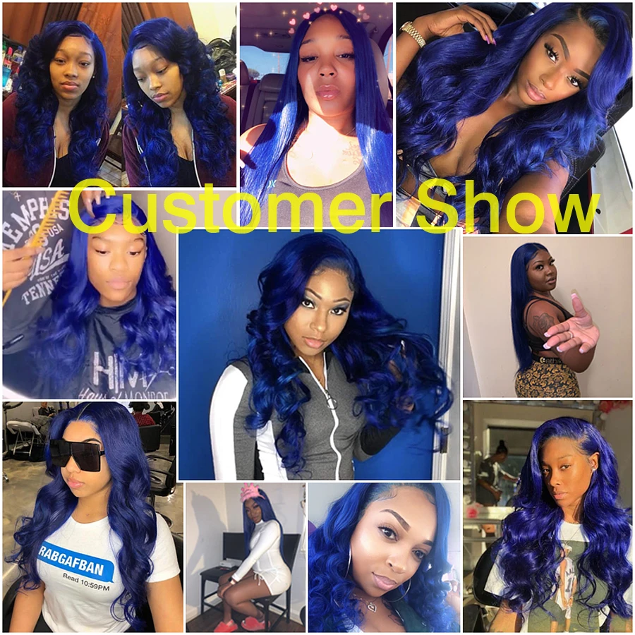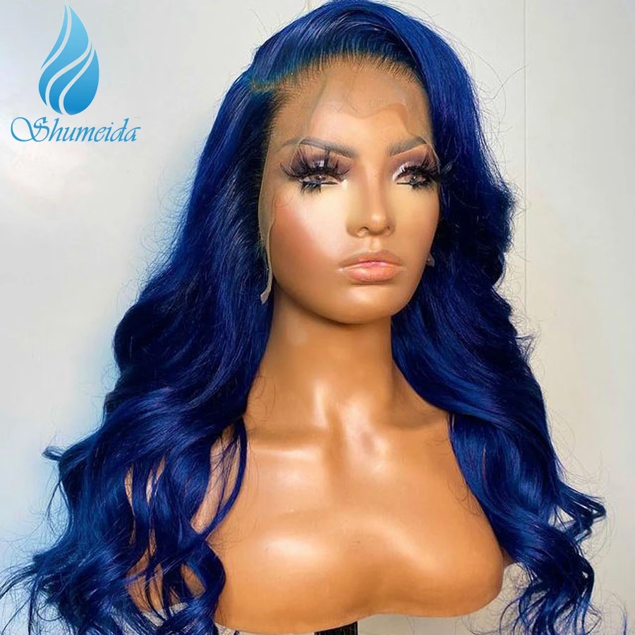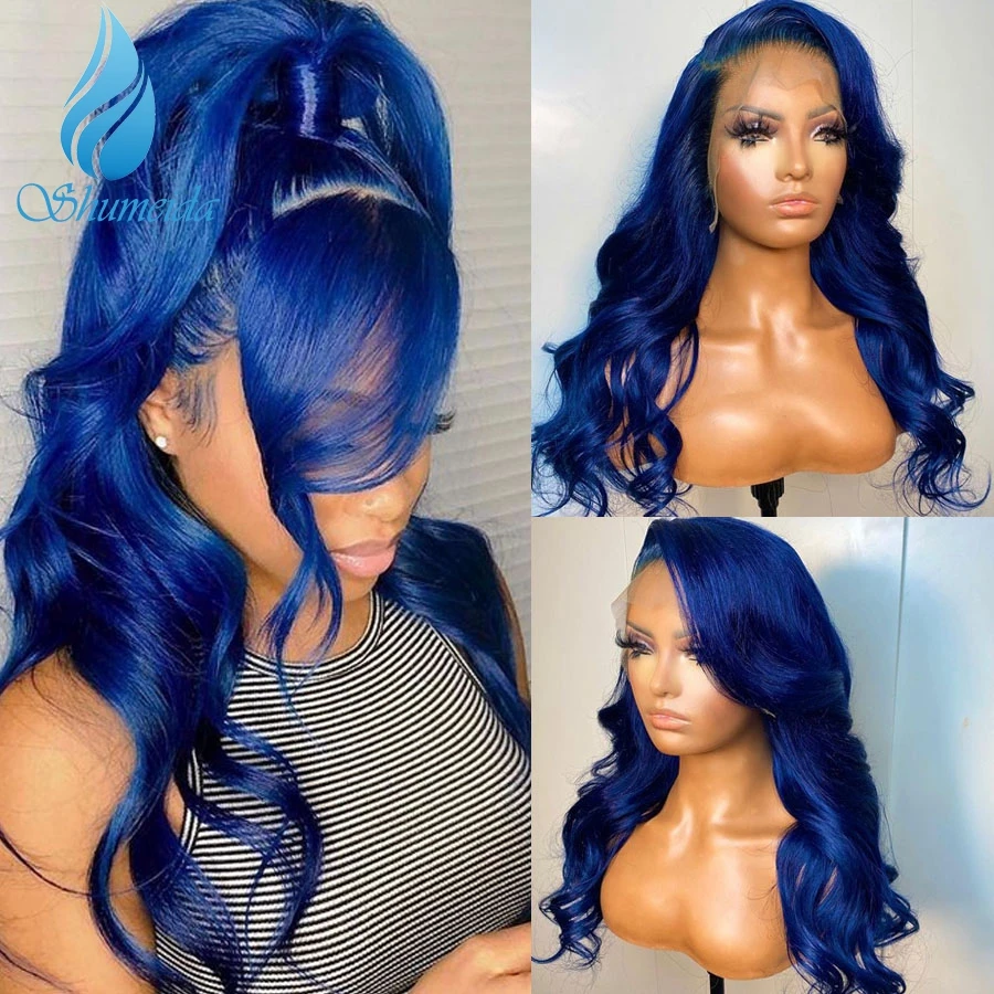 Парики синего цвета 13 х4 с предварительно выщипанной линией волос, бразильские волосы Реми, волнистые волосы, парик из натуральных волос с детскими волосами