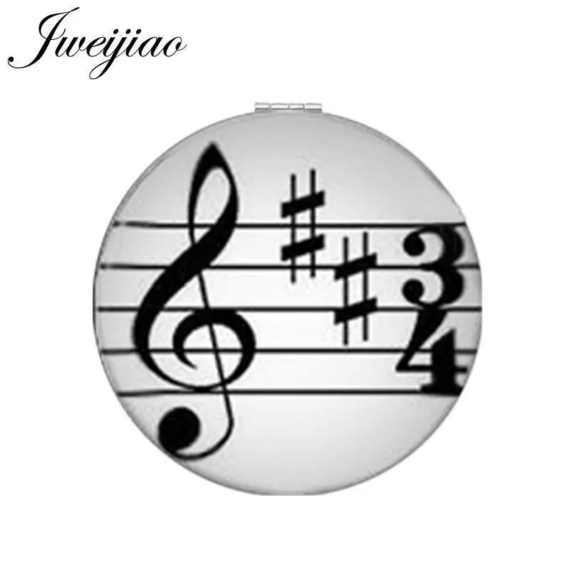 JWEIJIAO черно-белое круглое карманное зеркало с музыкальными нотами из искусственной кожи двухстороннее компактное складное мини-зеркало для макияжа Зеркала