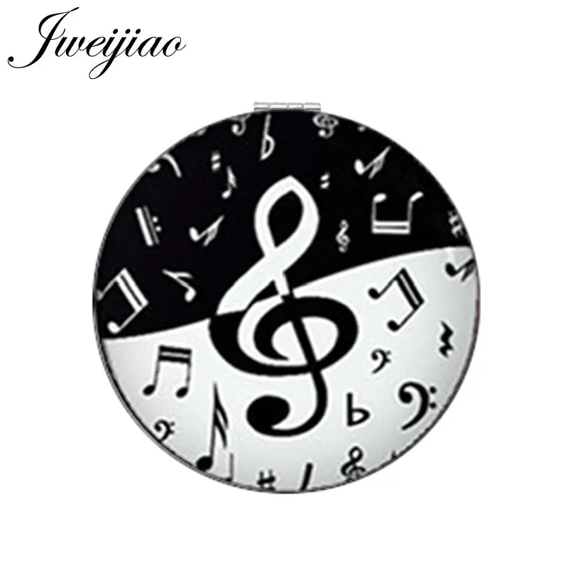 JWEIJIAO черно-белые музыкальные нотки круглые карманные зеркальные двухсторонние мини складные компактные зеркала для макияжа из искусственной кожи espejo
