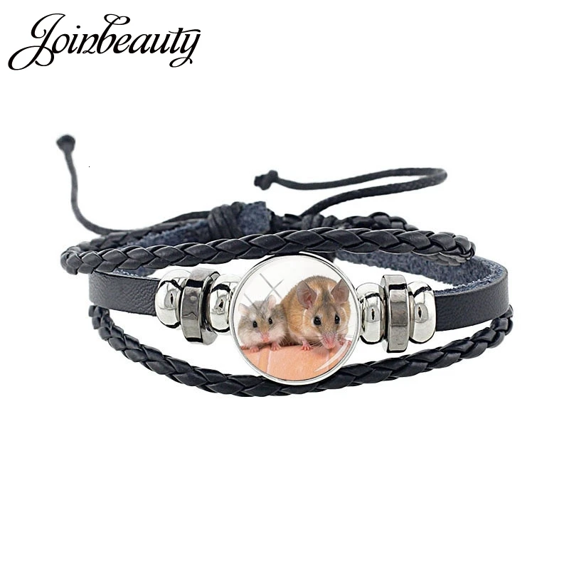 JOINBEAUTY милые животные хомяк Шиншилла с подвесками многослойный, из полиуретановой кожи браслет в винтажном стиле мужской Плетеный мужских и женских браслетов, QF517