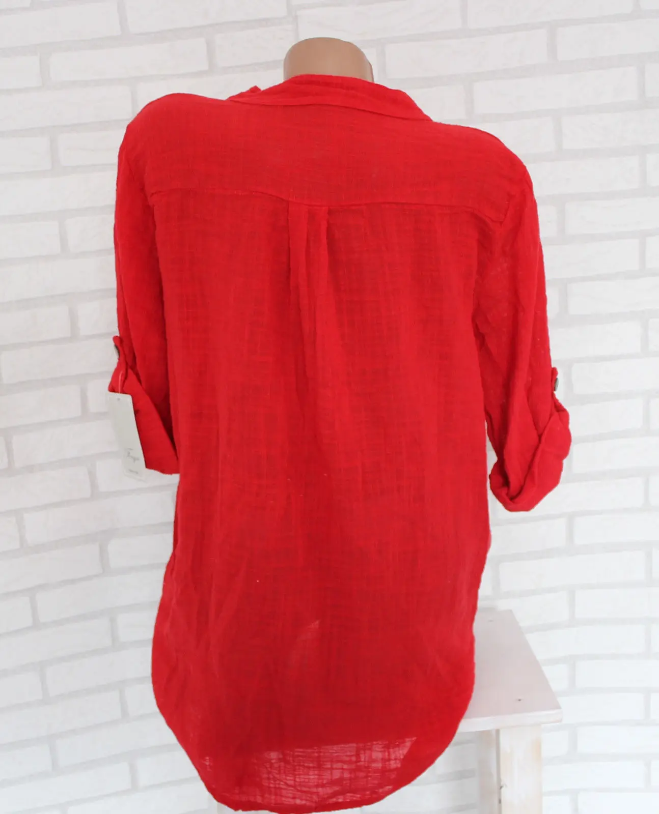 Блузка женская с длинным рукавом, однотонный топ из хлопка и льна, с V-образным вырезом, рабочая одежда, рубашки, 2021 размера плюс, осень S-5XL