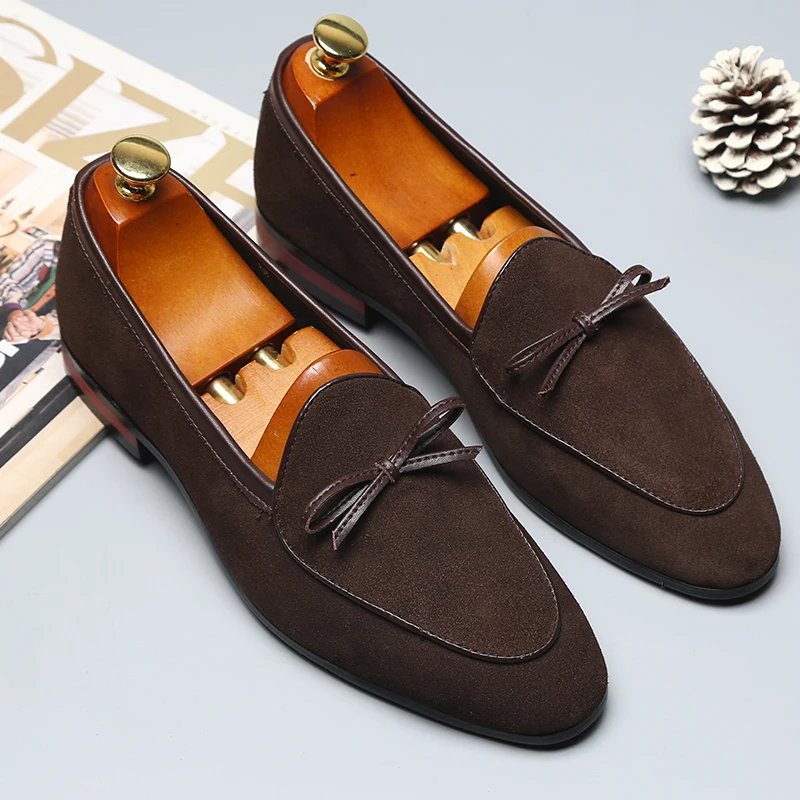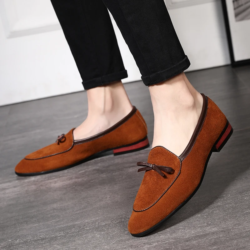 Классические Кожаные Туфли для джентльменов 2020, итальянские стильные замшевые Модные Дизайнерские повседневные кожаные туфли с бахромой и острым носком, большие размеры 37-48