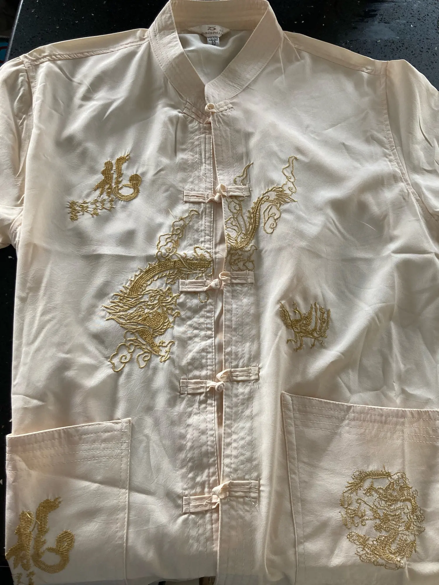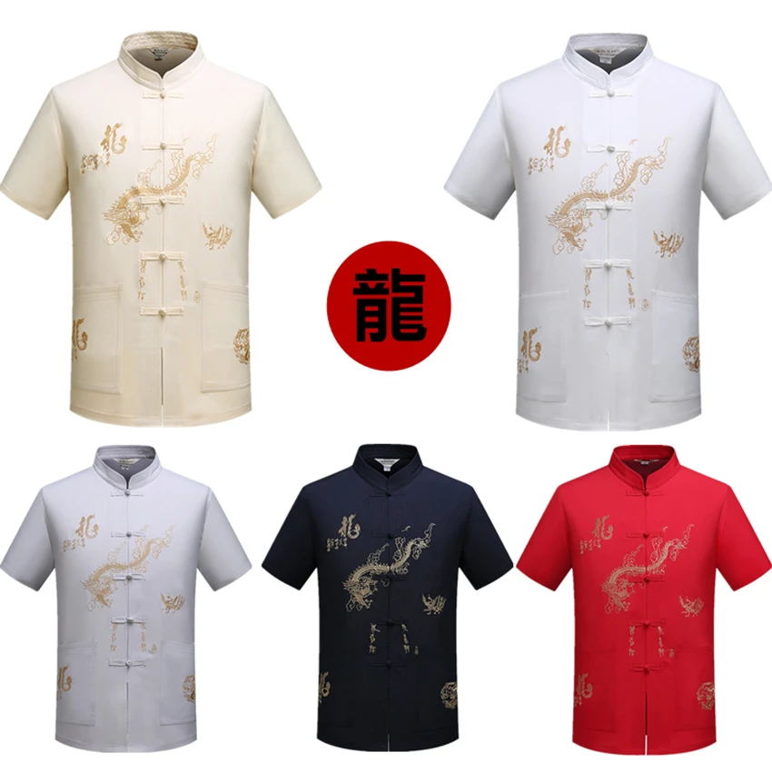15 видов цветов традиционная китайская одежда для мужчин, футболка с коротким рукавом, вышивка дракона, новый костюм Тан, Мужской Топ M-3XL