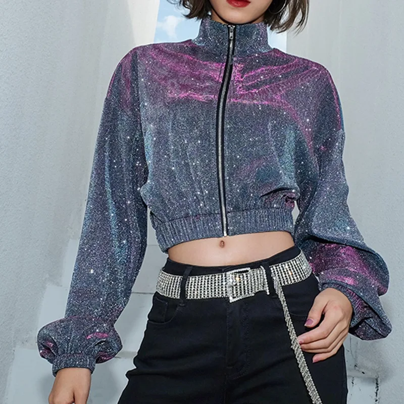 Блестящий пикантный женский кардиган с блестками, куртка, пальто с длинным рукавом, короткий укороченный болеро, одежда для клуба, винтажные праздвечерние чные костюмы