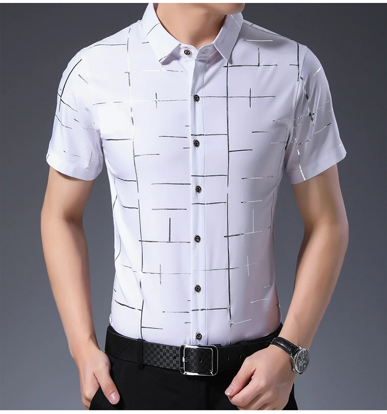 2022 брендовая Повседневная летняя Роскошная полосатая приталенная Мужская рубашка с коротким рукавом, уличная одежда, рубашки, мужские модные трикотажные рубашки 4162