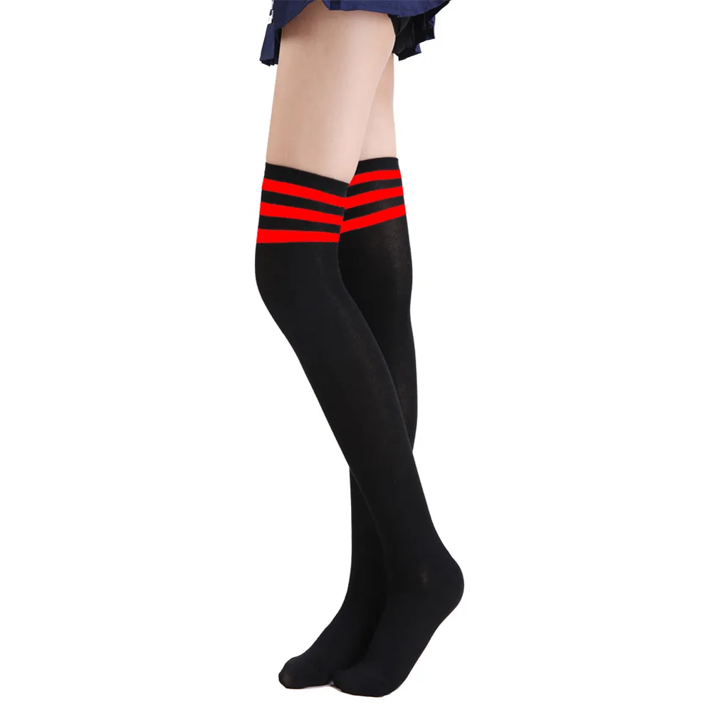 Модные Высокие гольфы до бедра для девушек женщин студентов полосатые хлопковые длинные чулки черные белые полосатые матросские носки