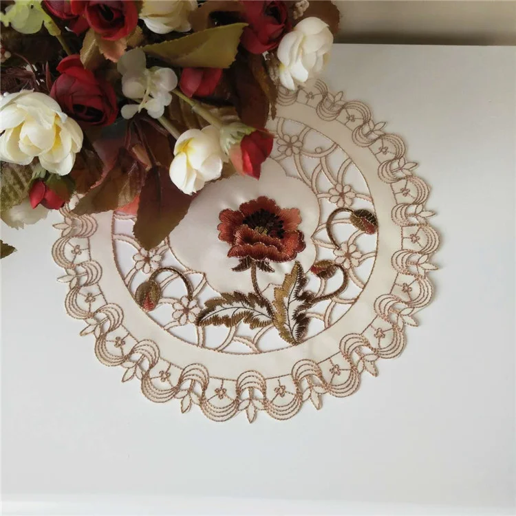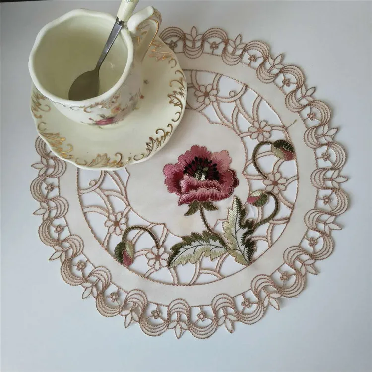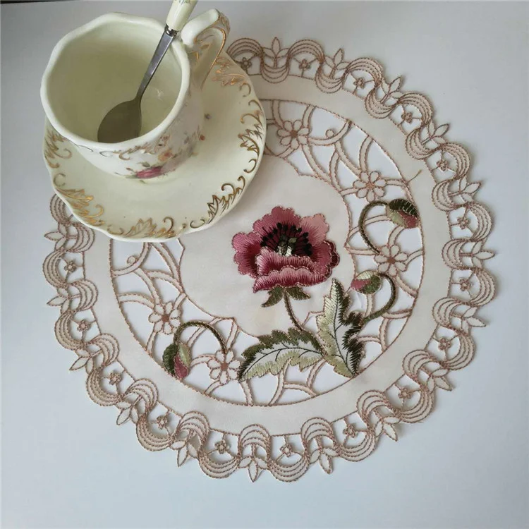 Круглая вышитая хлопчатобумажная скатерть для стола, настольная подставка, планшетофон для чаепития, настольное украшение