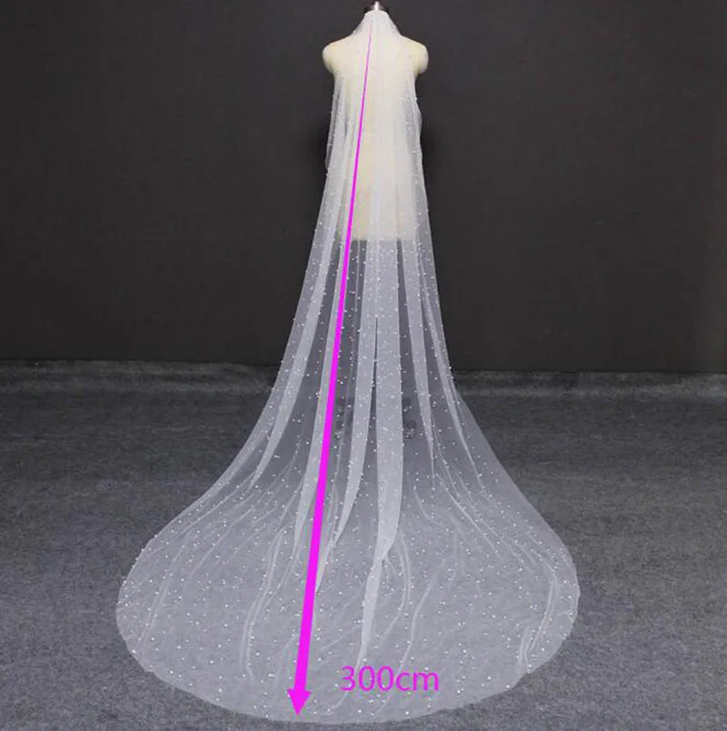 Фата невесты длинная Однослойная, перламутровая вуаль, 3 м, цвет белый слоновой кости, с жемчугом, аксессуары для невесты