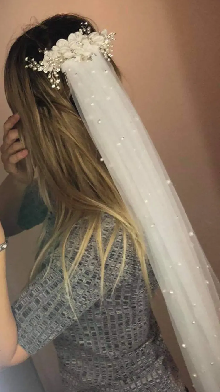 Продавец очень хороший! Легко общаться. Вуаль такая же, как на фото. Я так рад, что заказал это! Расческа не пластиковая, материал мягкий, есть много жемчужин. Выглядит очень красиво, красиво и аккуратно, и я определенно рекомендую его. Giiirl, если вам нужна вуаль с расческой и жемчугом, это именно то! Закажите эту. Я заказал цвет слоновой кости и 150 см, я очень доволен. 5 звезд!