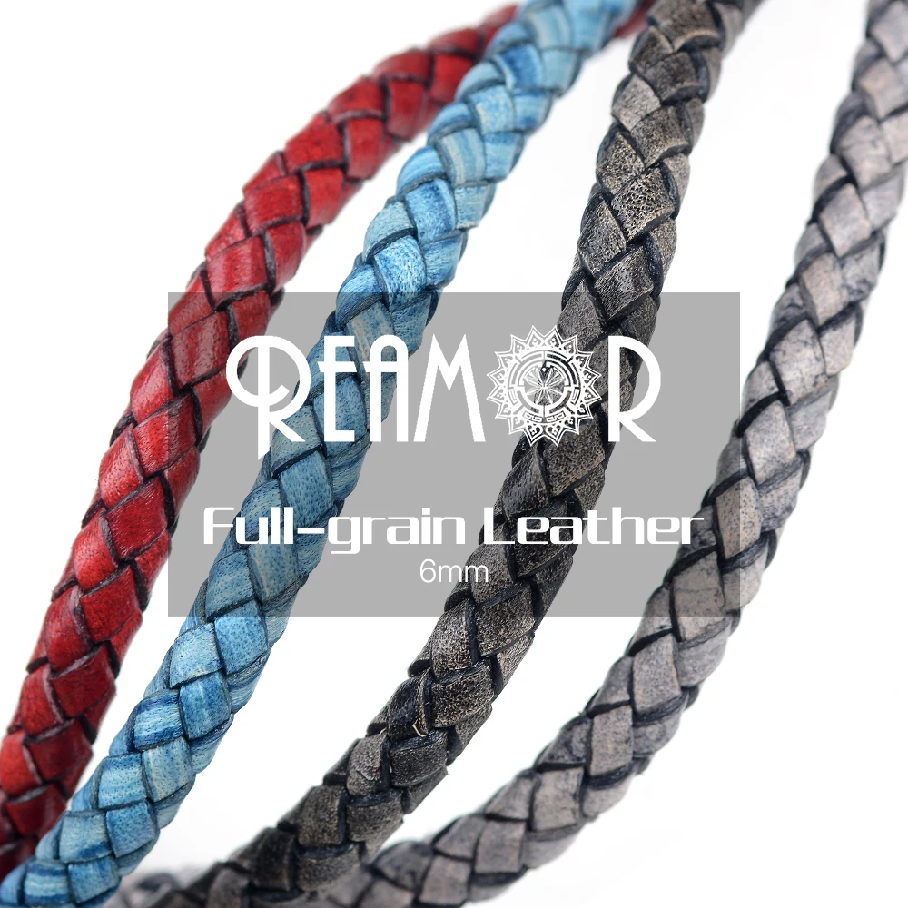 Шнур Плетеный REAMOR 1 м в ретро-стиле, красный, серый, черный, первый слой из воловьей кожи, матовый шнур 6 мм из натуральной оплетки для самостоятельного изготовления браслетов, ювелирных изделий