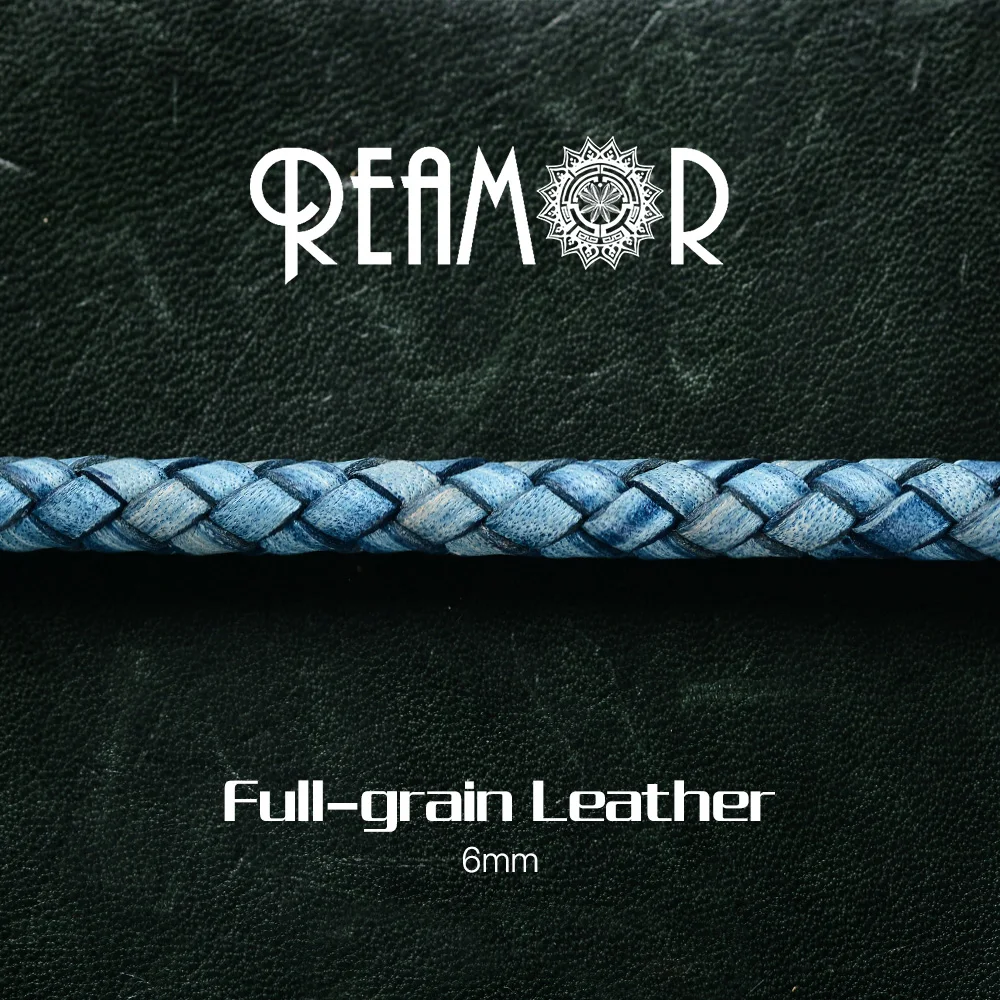 Мужские и женские браслеты из натуральной кожи REAMOR, матовые черн...