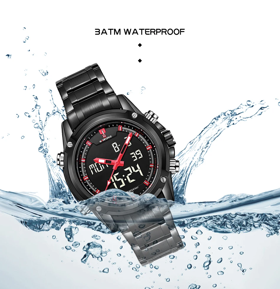 Часы NAVIFORCE мужские, спортивные, армейские, армейские, кварцевые, аналоговые, светодиодный, водонепроницаемые