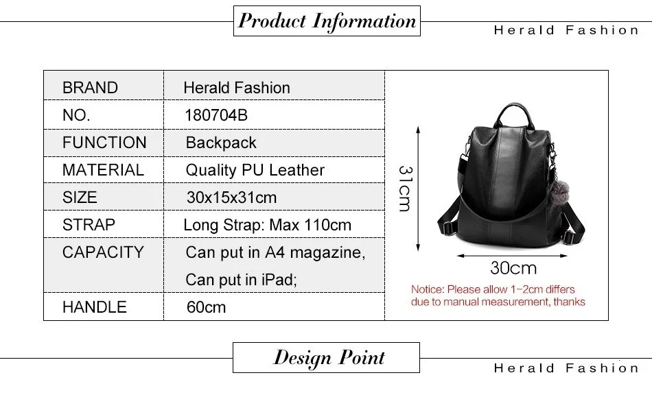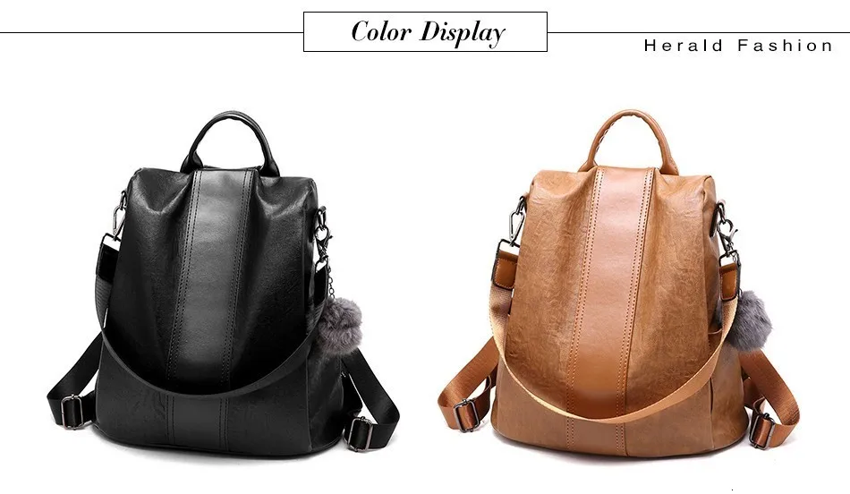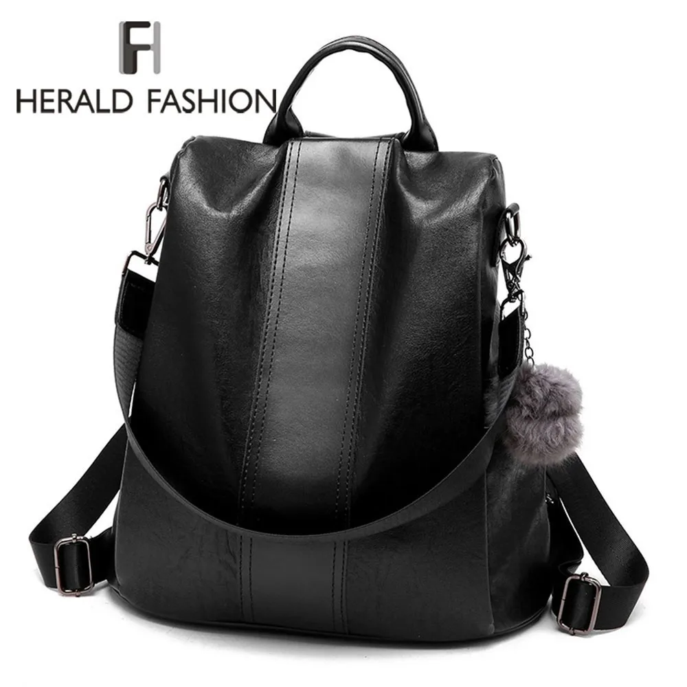 Herald Fashion повседневный кожаный женский рюкзак с защитой от кражи качественные винтажные Рюкзаки Женские вместительные дорожные сумки через плечо