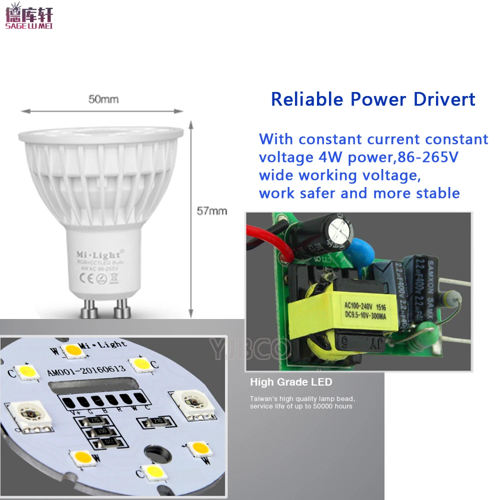Mi светильник 2,4G беспроводной пульт дистанционного управления 4 Вт GU10 RGB + CCT LED с регулируемой яркостью Mi-light светильник ПА светодиодсветодиодный лампа светодиодный прожсветильник Тор умсветодиодный ная лампа AC85-265V