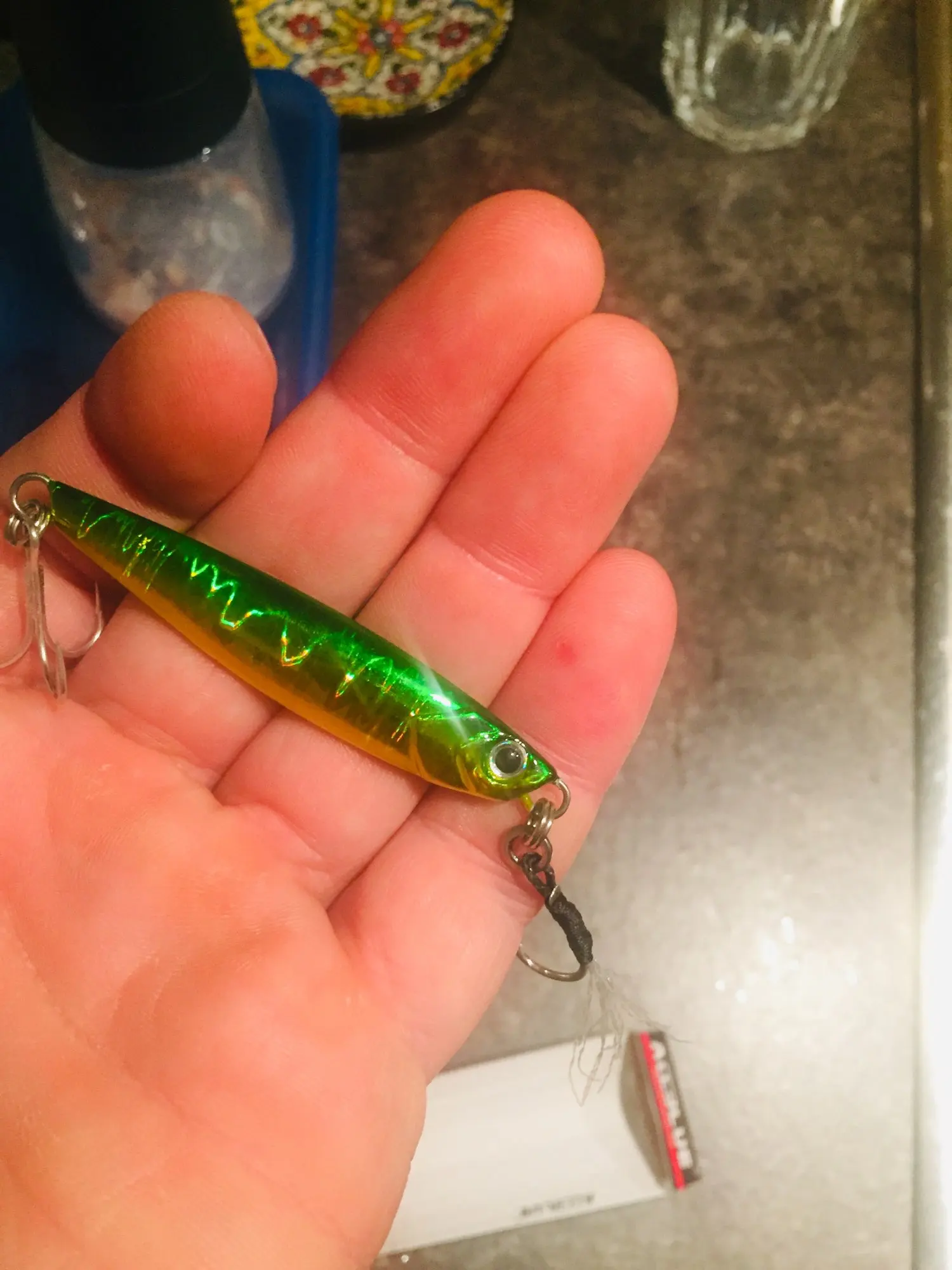 Ну, из-за рыбалки. Он имеет хорошее действие, и крючки не плохо. Очень яркие цвета и блики. Я бы порекомендовал снять тройную заднюю часть и заменить ее на простые крючки, особенно если вы ловите рыбу в каменной зоне.