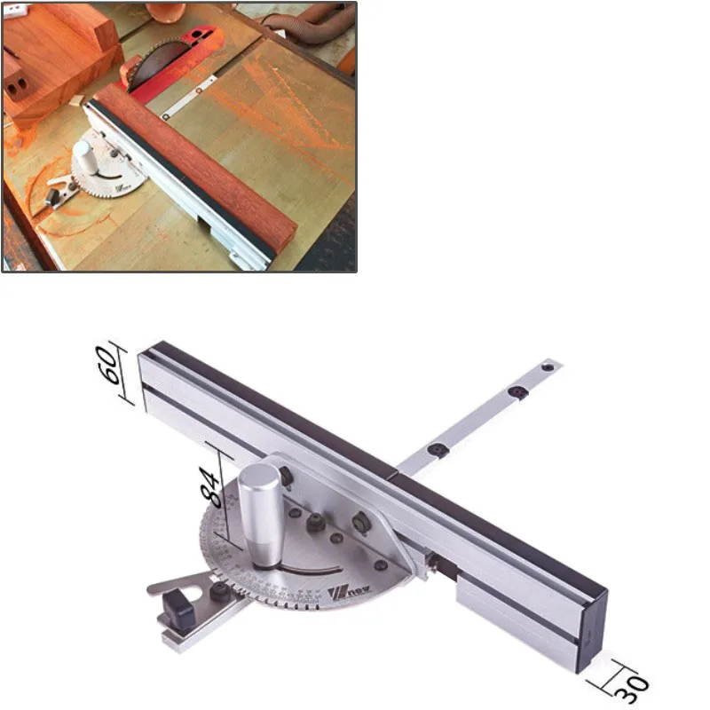 Упор торцевой, прибор для отрезного станка с направляющей планкой и линейкой, для деревообработки