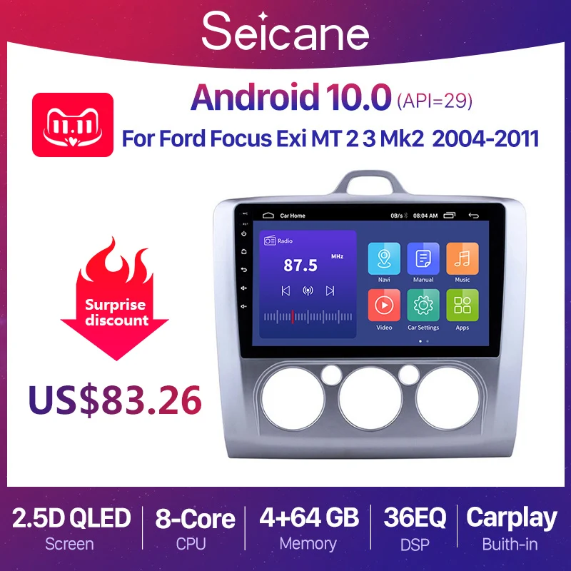 Seicane 9-дюймовый Android 10 2 din QLED автомобильный радиоприемник, стерео, плеер для Ford Focus 2 Exi MT 2004-2009 2010 2011, GPS-навигация