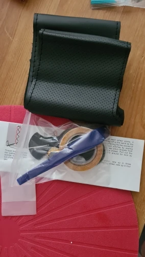 Черная искусственная кожа, Ручное шитье чехол рулевого колеса автом...