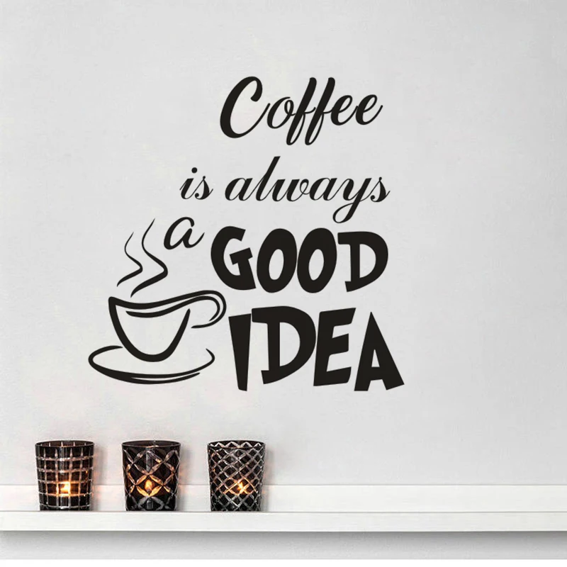 Кофе всегда хорошая идея Цитата Наклейка на стену кухня кафе магазин окно виниловые наклейки съемные на стену с изображением чашечки кофе фрески арт AJ513