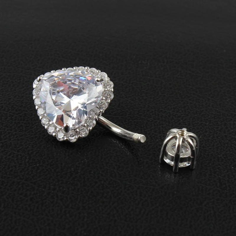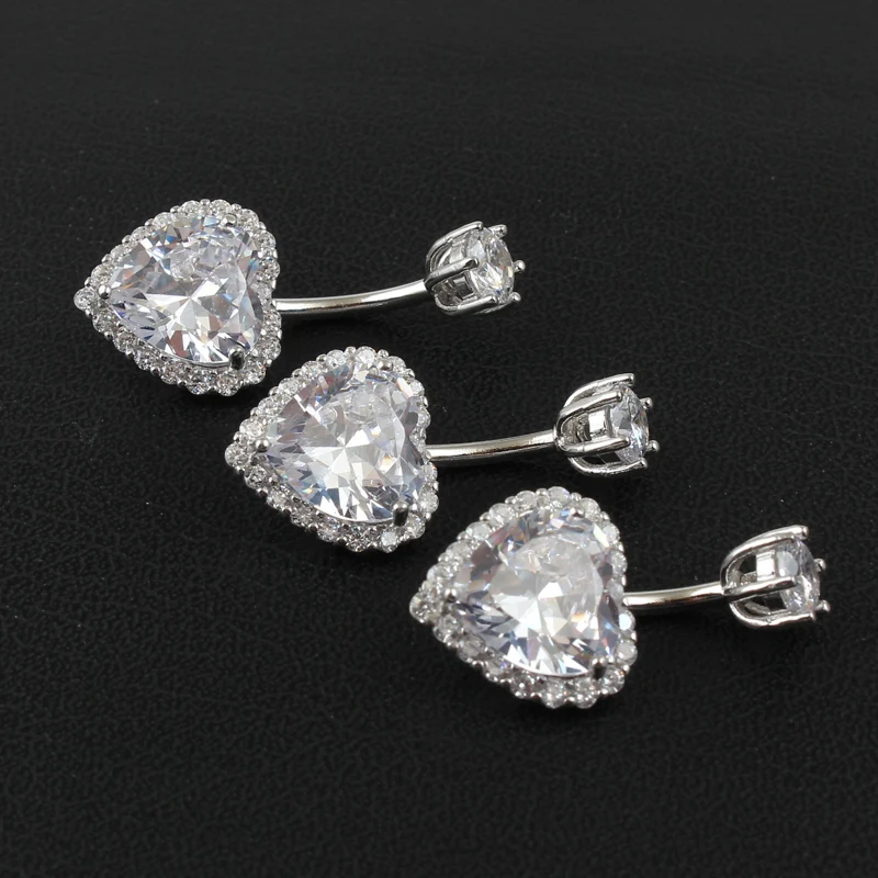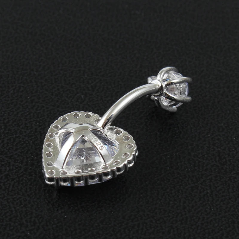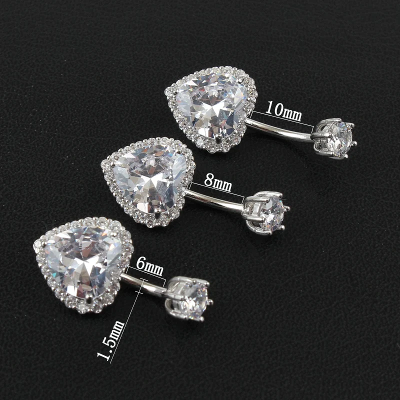 Реальные 925 пробы серебряные кольца для пупка Кольца для женщин, хорошее ювелирное изделие, ювелирное изделие, сердце, пирсинг тела ювелирные изделия S925 6 8 10 мм пупка Бар циркониевые камни