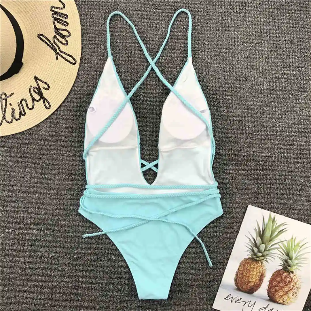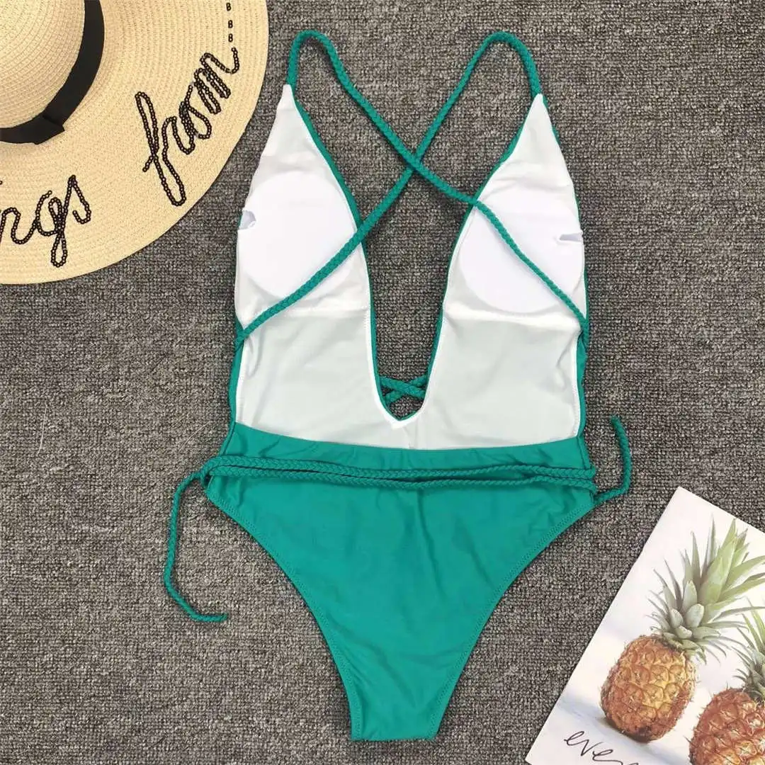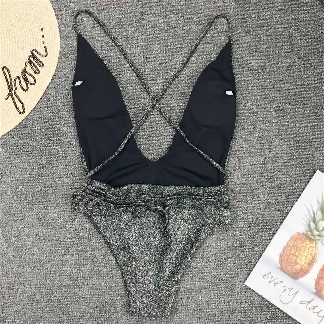 Женский слитный купальник, с глубоким V-образным вырезом и блестками