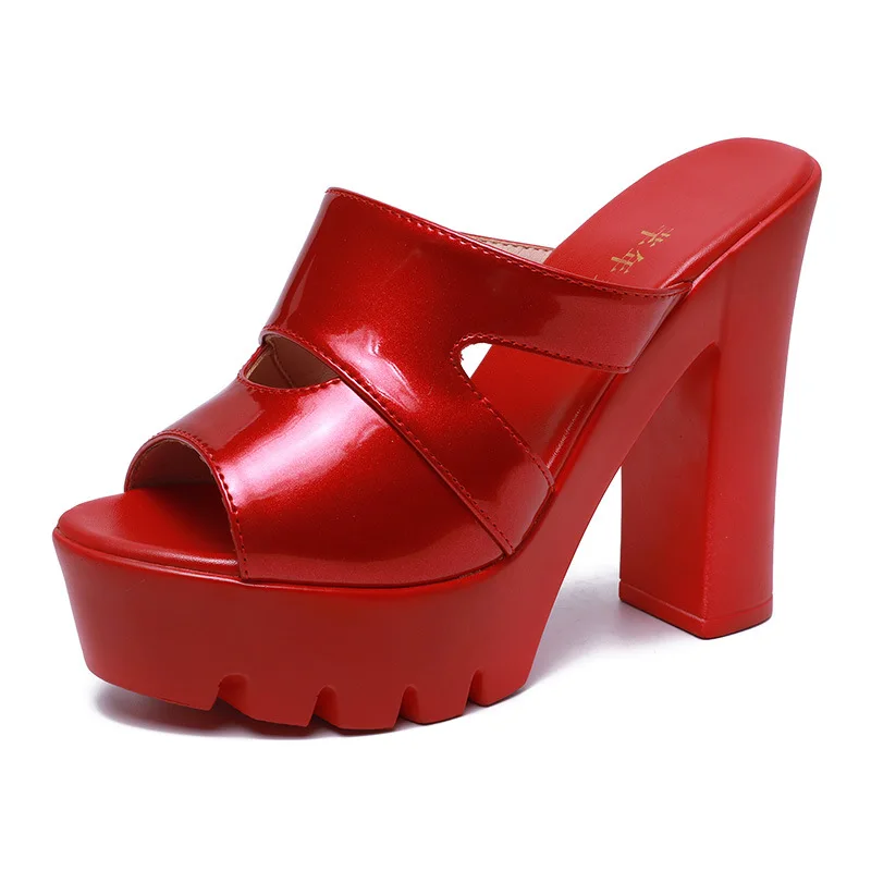 CHAISHOU/обувь женские сандалии летние шлепанцы лакированная кожа 13 см супер высокий и толстый каблук пикантные шлепанцы с открытым носком размера плюс 35-43 CS-468