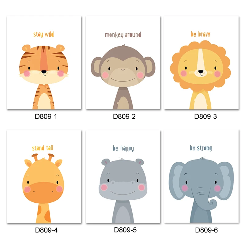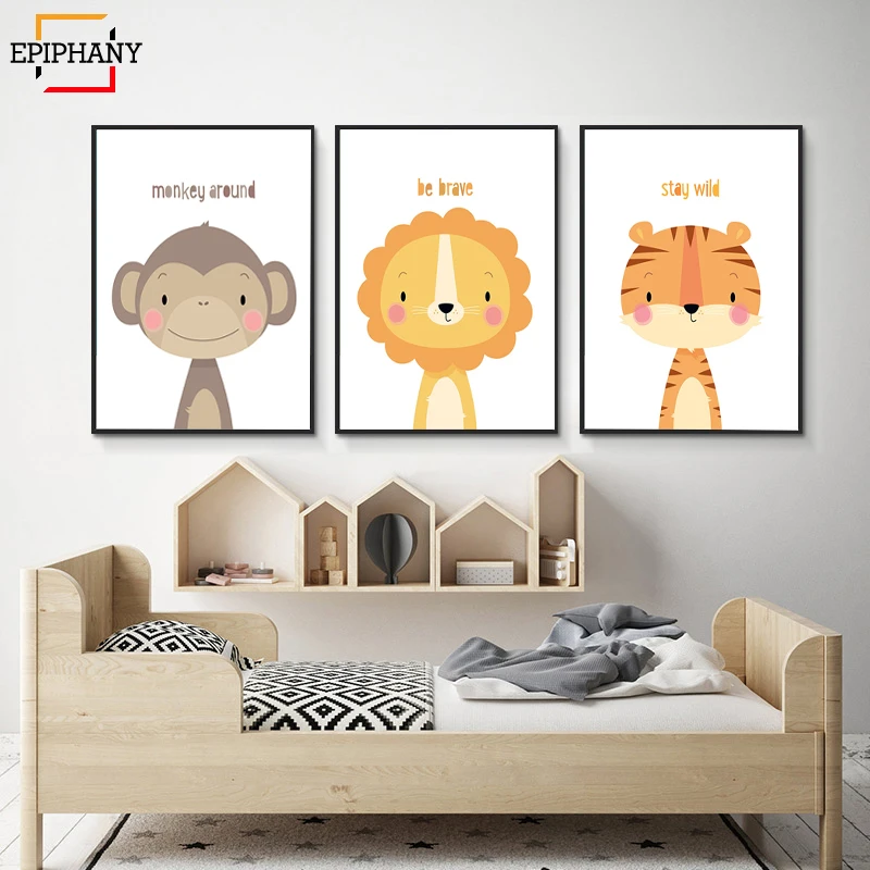 Детские животные питомник стены искусства быть смелым быть сильные цитаты Скандинавская Картина на холсте аниме постер картины для детской комнаты Deocr