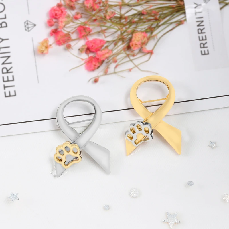 Брошь с эмалью, золотого и серебряного цвета, в форме кошачьей лапы