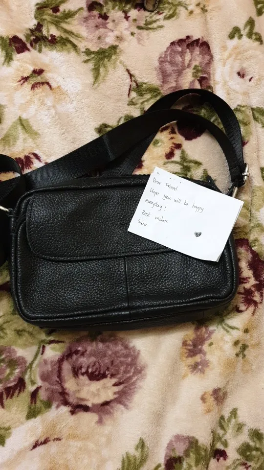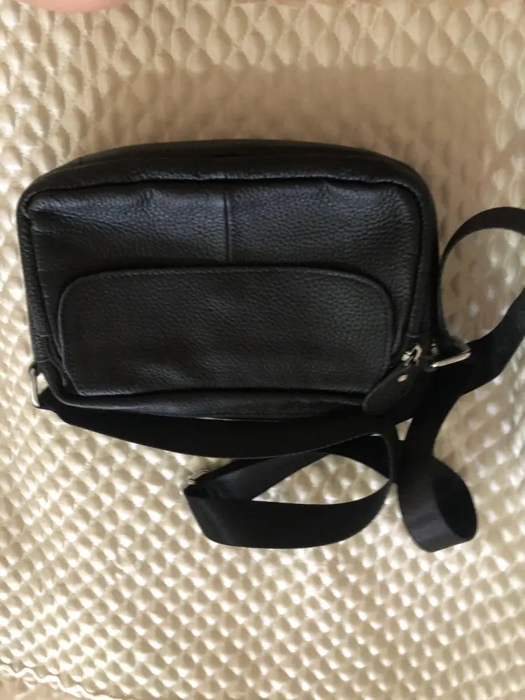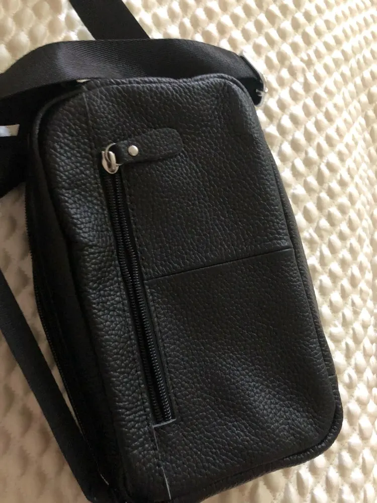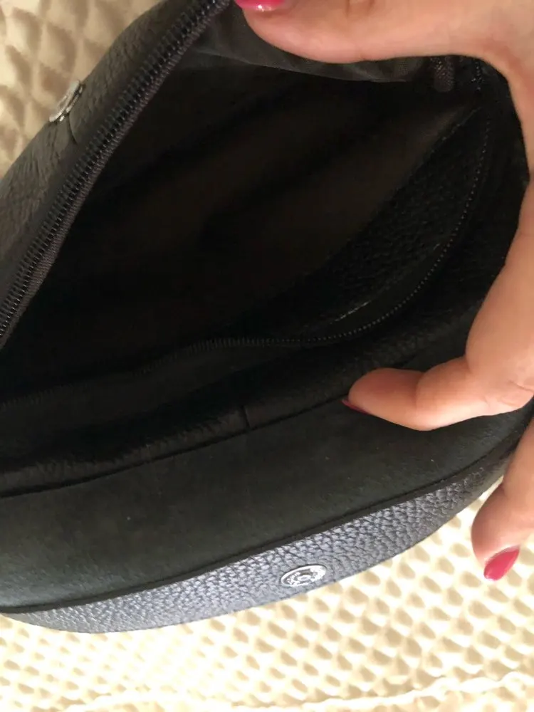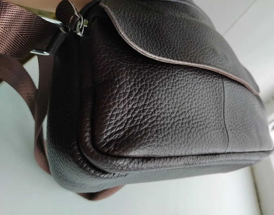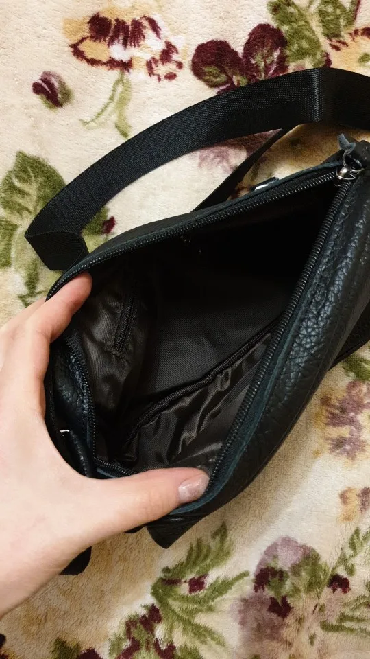 Доставка очень быстрая. Сумка кожаная. Симпатичная. В неё влезает ежедневник. Из недостатков: Не обратила внимания, что ремешок у неё тканевый. И мне не хватает кармашка для сотового телефона.