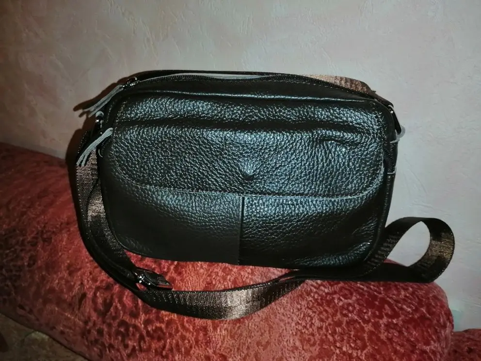 Заказом довольна. Ожидала разочарование хоть в чем то, цена слишком низкая. Получила 150% из 100 удовлетворение. Сумка из натуральной кожи, фурнитура хорошая, даже подклад не расстроил- порадовал. Вместительная и выглядит хорошо. Ремешок вживую сочетается, не выделяется, на фото как то по другому, возможно отсвечивает. Оценка твердая 5 по 5ти бальной шкале. Спасибо продавцу порадовал! + Пришла посылка тоже раньше обозначенного срока.