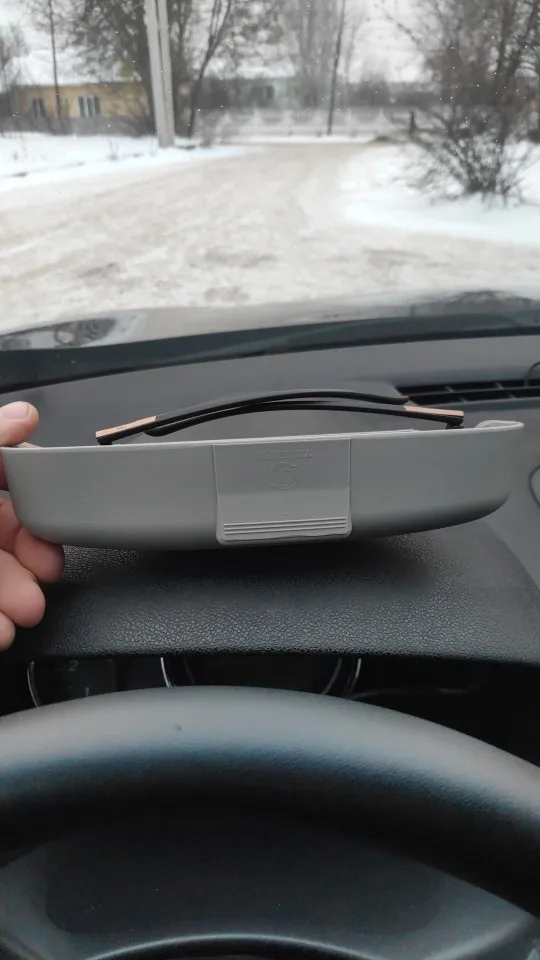 Логан (2018). Всё ИДЕАЛЬНО подошло. Но. Решил заморочиться и поставил не на шурупы (замучаешься в пластмассу закручивать), а на винтах. Дома все разметил и просверлил в пластиковой табличке отверстия (если не понравится - можно пластину перевернуть и прикрутить на шурупы, на фото видно). В машине тоже все разметил и просверлил. Без фанатизма!!! Не повредите крышу!!! Аккуратно, аккуратно, аккуратно. Винты можно было бы покороче. У меня 15 мм. Можно 10 мм. Тогда будет еще ближе прилегать к кузову. Футляр голове при посадке в машину не мешает. Когда едешь - тоже. У меня рост 182 см. Футляр глубокий. Очки мужские легко помещаются. Работа не сложная. Но если бы с другой стороны винтики помог придержать кто - нибудь, то поставил бы не за 10 минут, а за 3. Но нет же - потел, кряхтел, матерился сам. Зато эту счастливую морду лица нужно было бы видеть (а еще лучше сфотографировать).