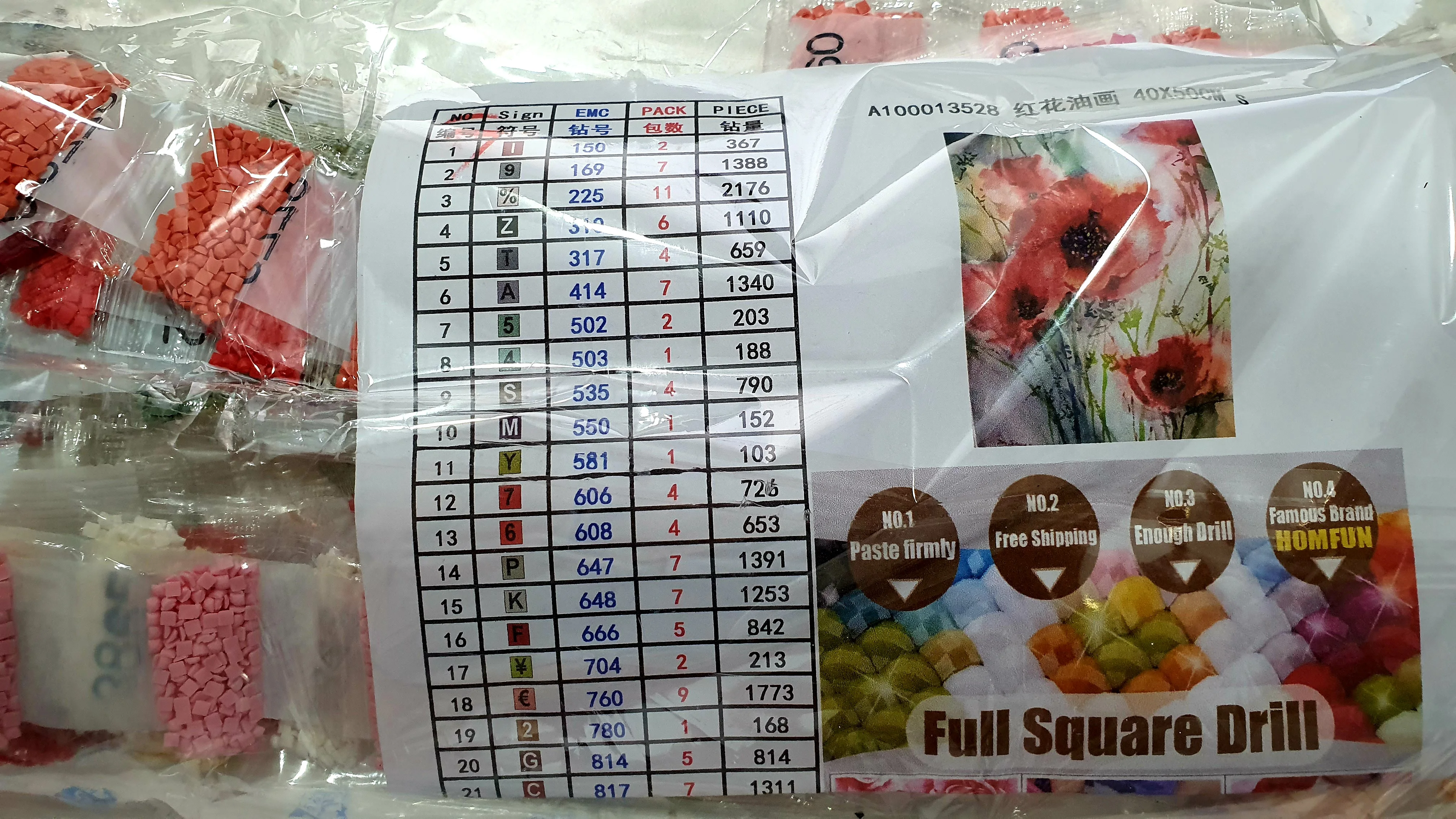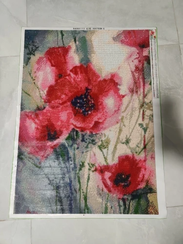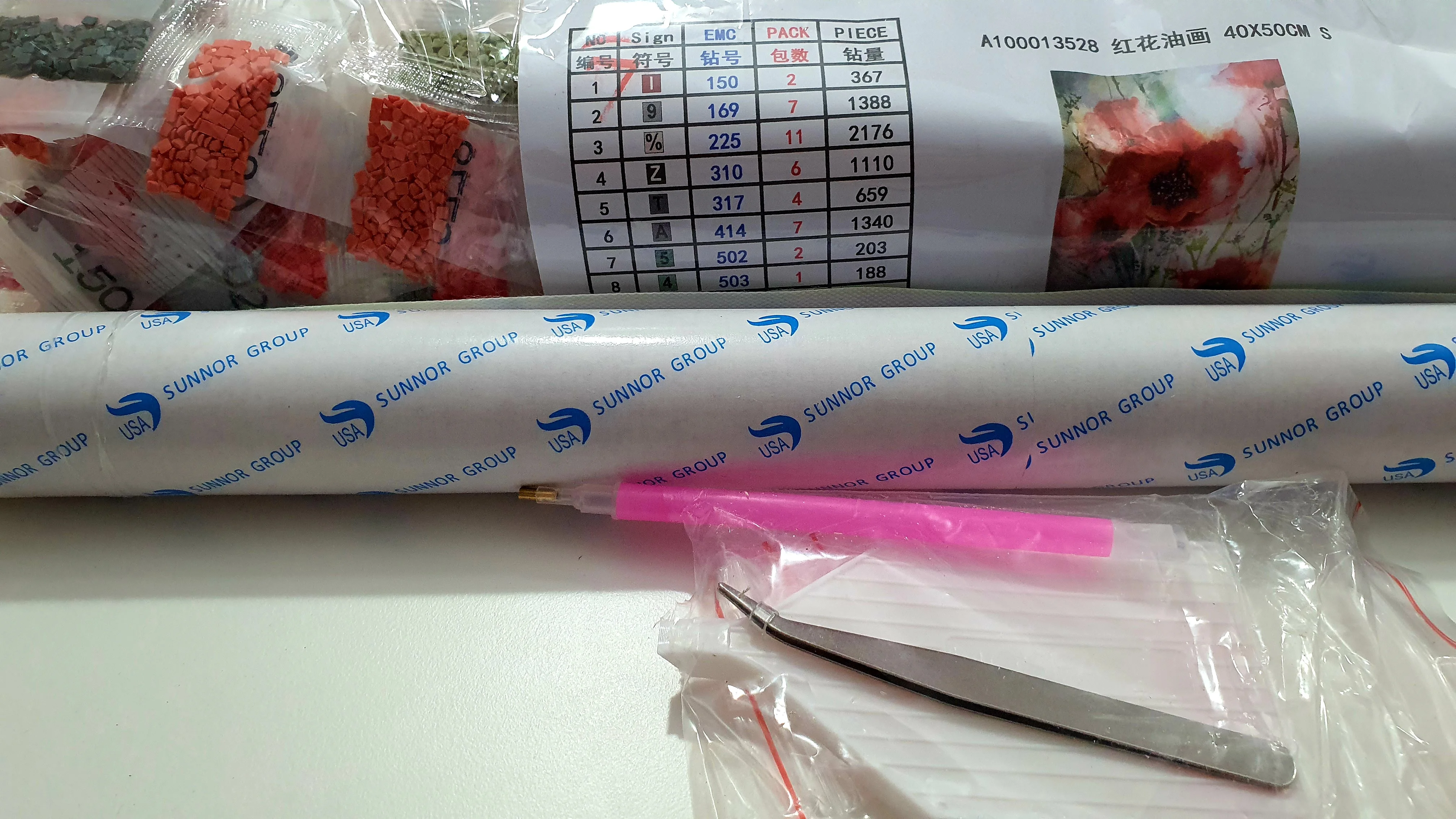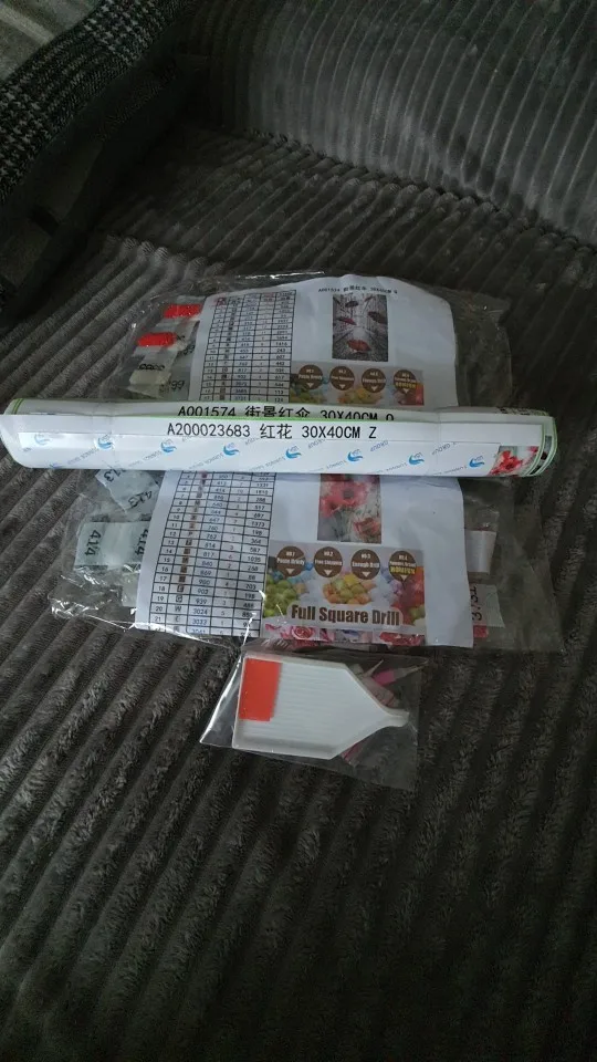 Товар отслеживался, пришёл быстро. Вышивка намотана на круглый валик, ничего не помято; алмазики ровные, всего хватает, бракованных очень мало. Клеевой слой хороший, схема чёткая, читается легко. Единственный минус - было всего 5 зип-пакетиков, а цветов всего 44. В остальном довольна. Если успею выложить картину, добавлю отзыв.