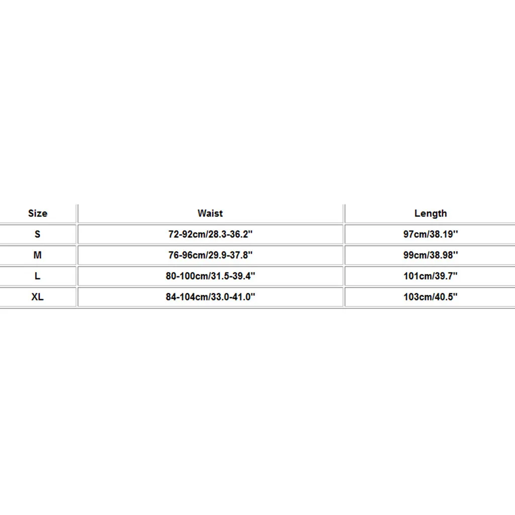Размер: SТалия: 72-92 см/28,3-36,2"Длина: 97 см/38,19 дюймаРазмер: MТалия: 76-96 см/29,9-37,8"Длина: 99 см/38,98 дюймаРазмер: LТалия: 80-100 см/31,5-39,4"Длина: 101 см/39,7 дюймаРазмер: XLТалия: 84-104 см/33,0-41,0"Длина: 103 см/40,5 дюйма