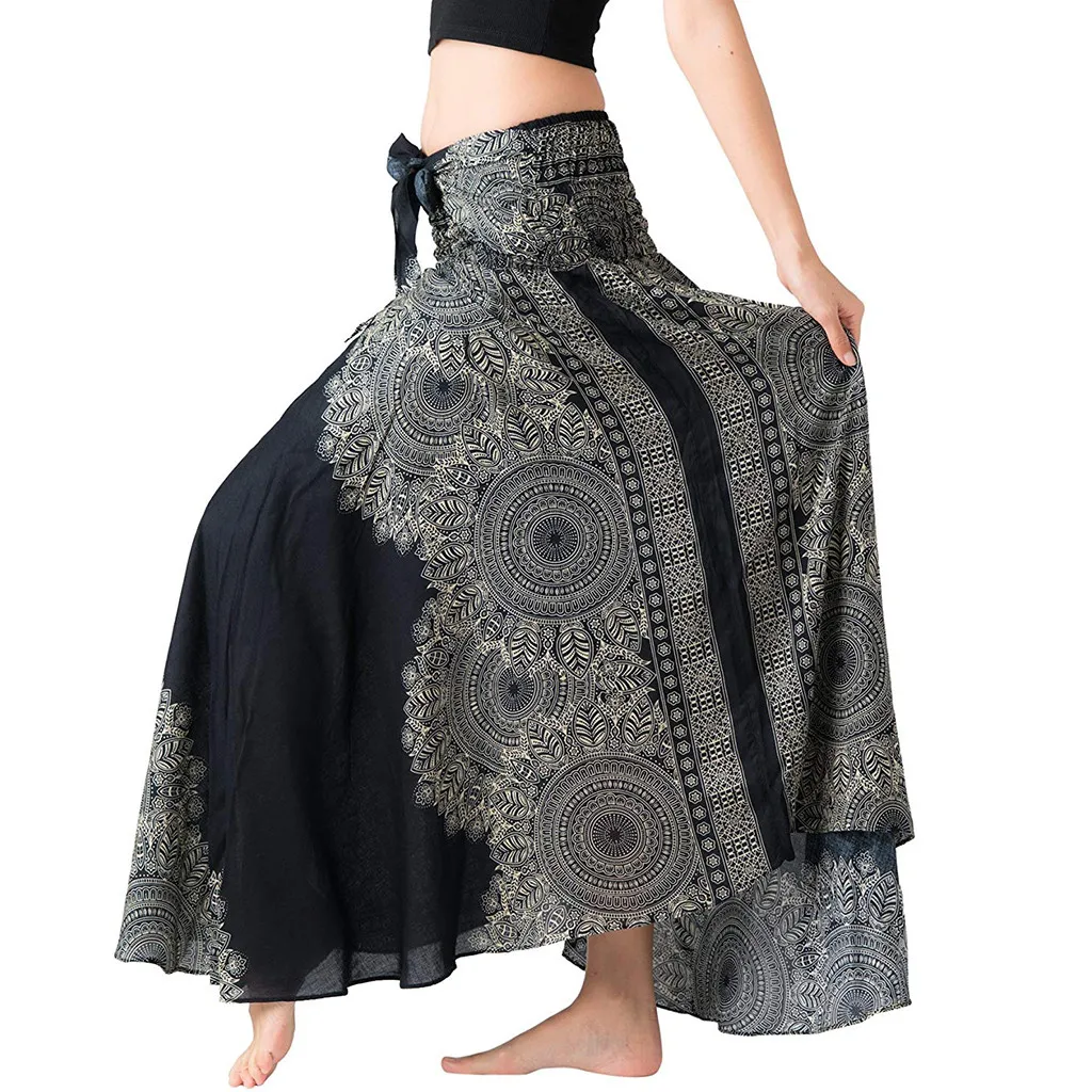 Длинная богемная бандажная юбка в стиле хиппи, с цветочным принтом,...
