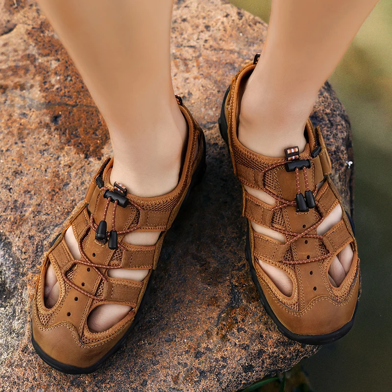 Сандалии, летняя мужская обувь, искусственная кожа, нескользящая обувь, Пляжная уличная Мужская обувь для вождения с закрытым носком