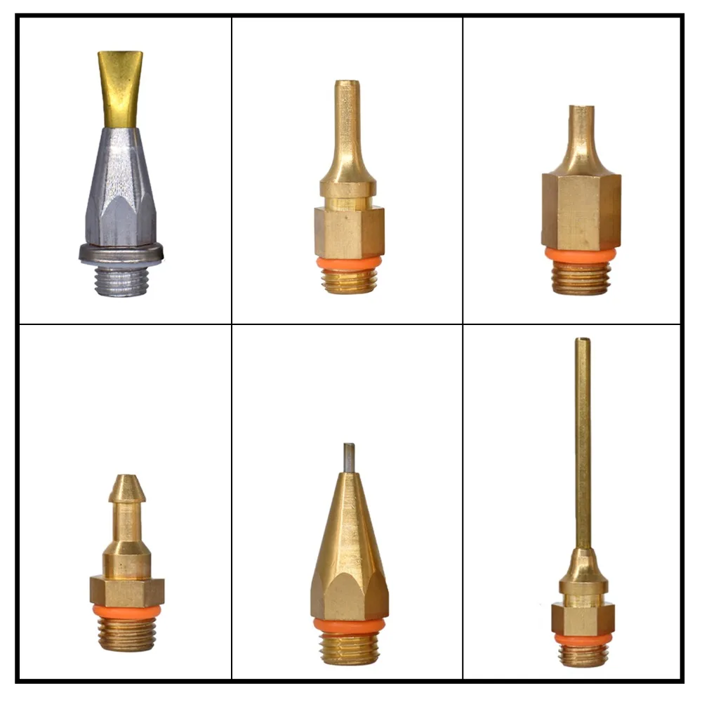 Медные сопла встроены в герметичный стальной шар, стальной шар увеличит отверстие сопла, чтобы предотвратить утечку клея, когда вы остановите использование. Медные насадки могут быть удалены и заменены, вы можете обменять различные спецификации сопла для применения ТП ваш другой вариант использования.