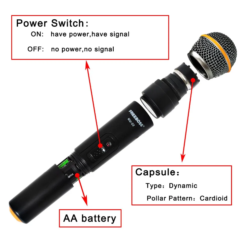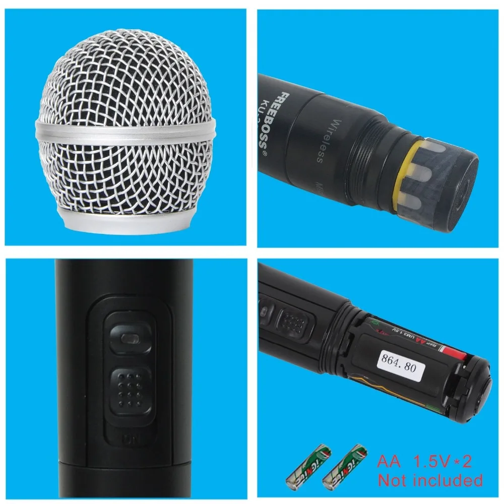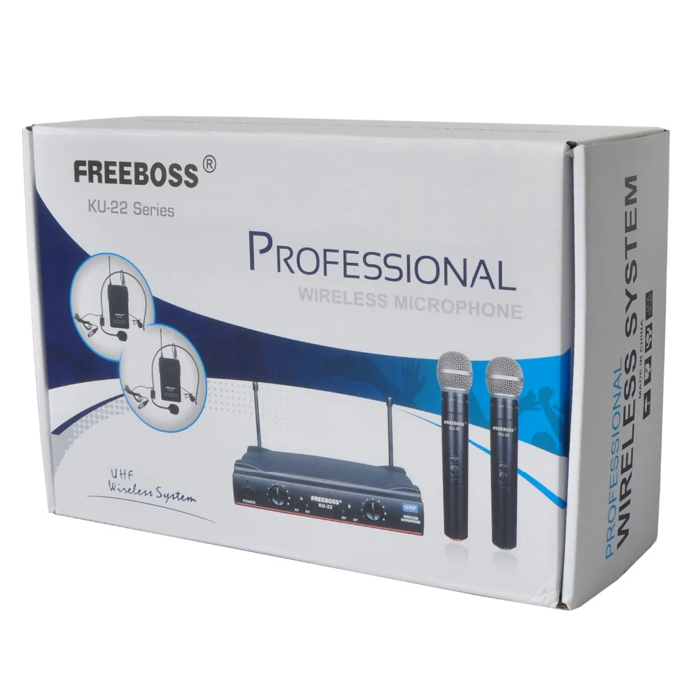 Новый портативный Двухканальный UHF беспроводной микрофон Freeboss