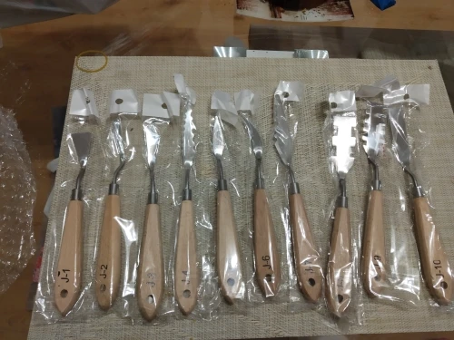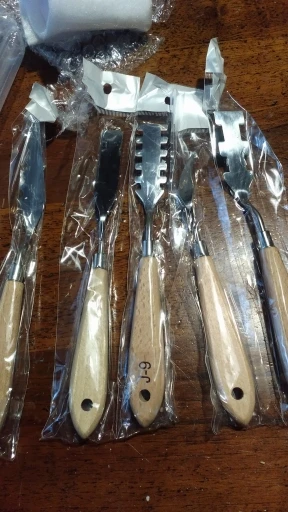 Мастихины упакованы отлично, разной жесткости, всё отлично.
