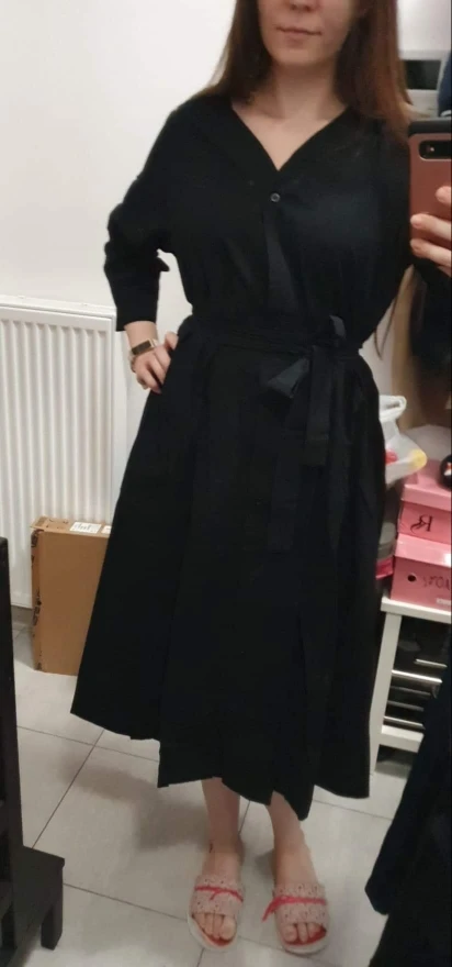 Платье ехало почти два месяца, очень его ждала. Ну что сказать... мне оно почти как палатка, пояс ситуацию не исправляет(( к тому же оно очень сильно красит, даже после стирки, так что минус одна звезда. В целом выглядит неплохо, отдам маме, но худеньким покупать не рекомендую.