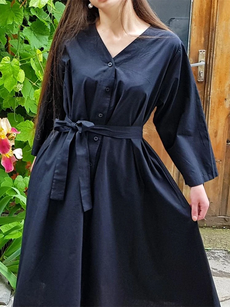 Даже не знаю что и поставить, по качеству платье неплохое, но... одна сторона длиннее другой и пуговицы не напротив дырочек, а сдвинуты. как так тяп-ляп можно пошить? открыла спор, пол цены вернул продавец сразу. Когда застегнуто, то не так критично. Но я очень удивлена, отзывы были хорошие.