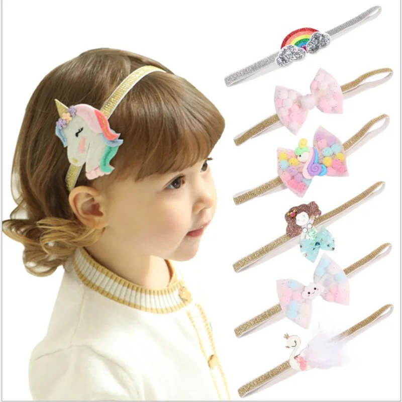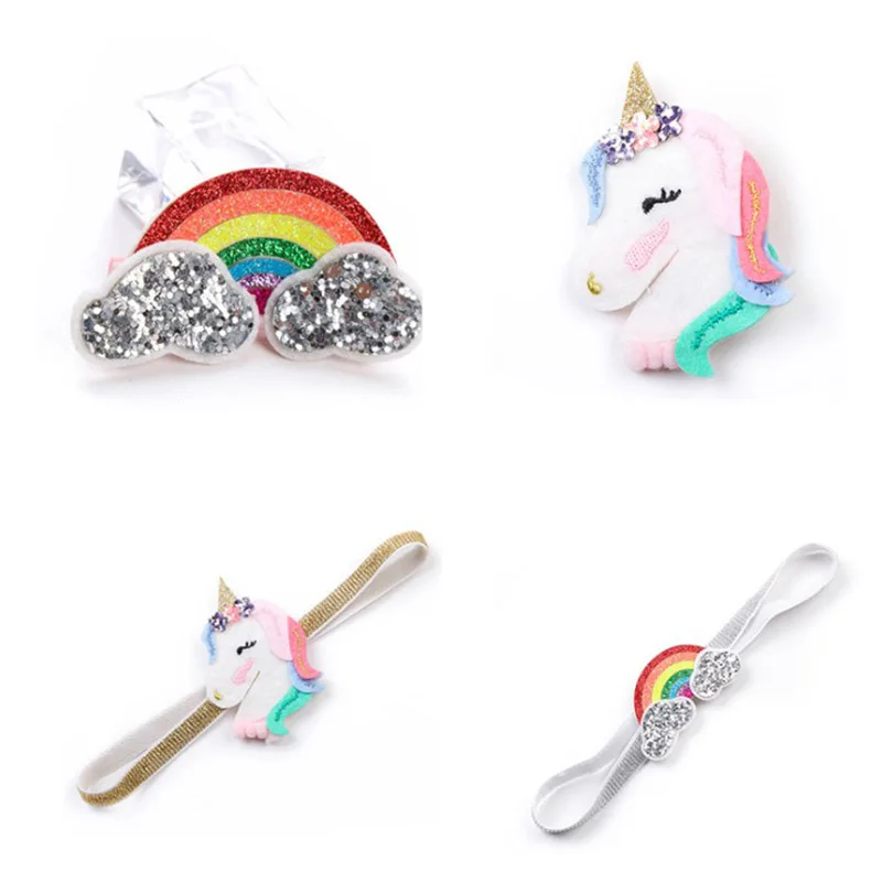 Повязка на голову для девочек, модный ободок с единорогом, радуга, аксессуар на голову