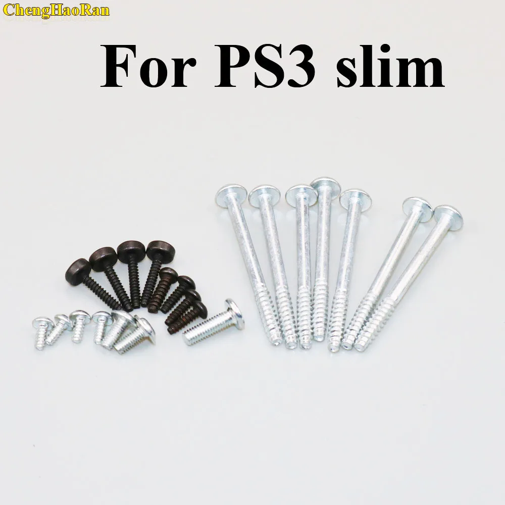 Полный комплект из черных пластиковых винтов ChengHaoRan для PS3, тонкие винты для консоли, резиновые накладки на ножки, комплект винтов, запасные части, замена