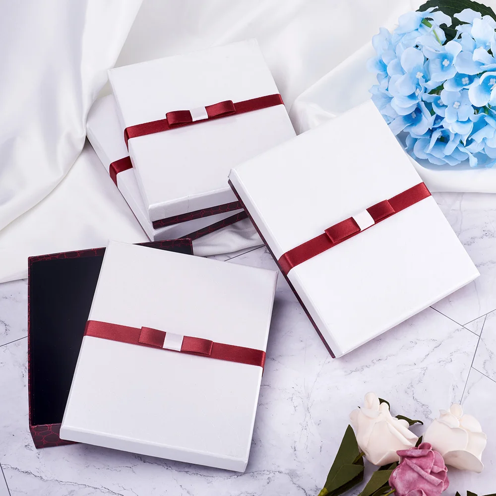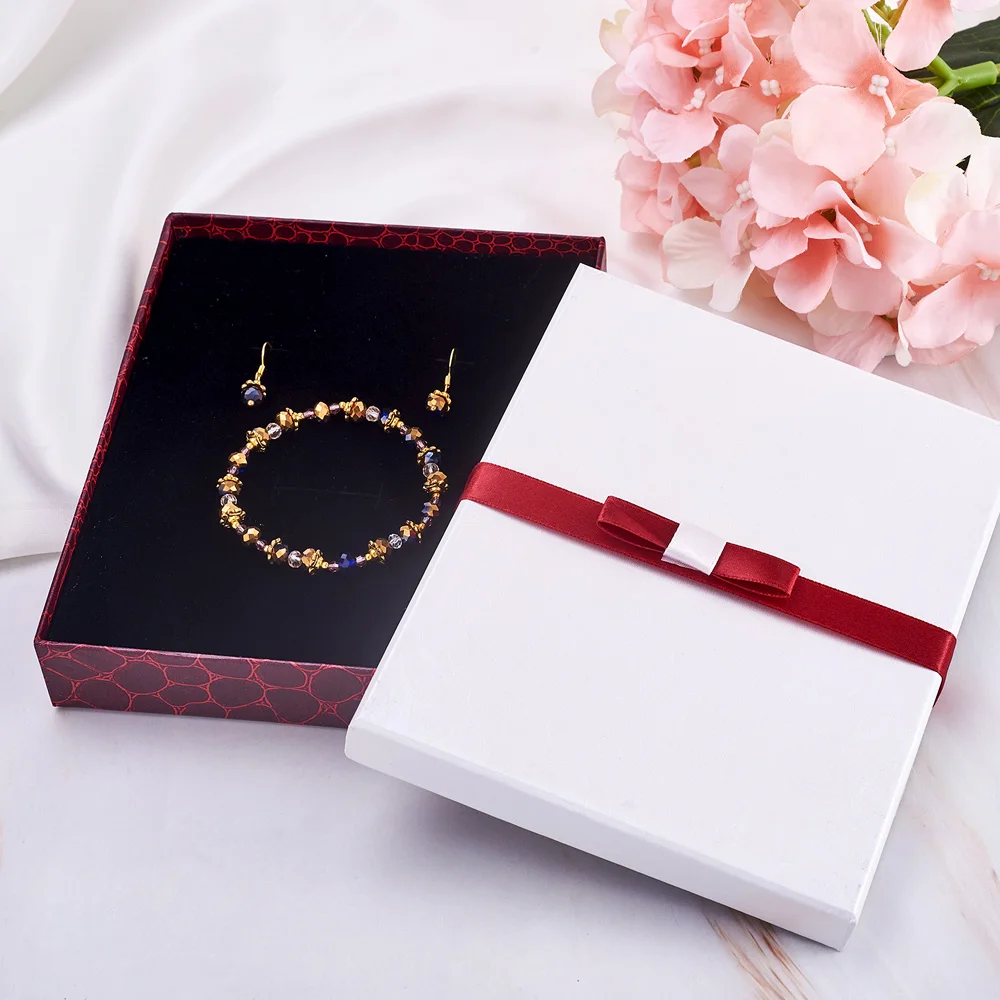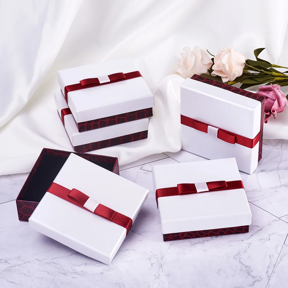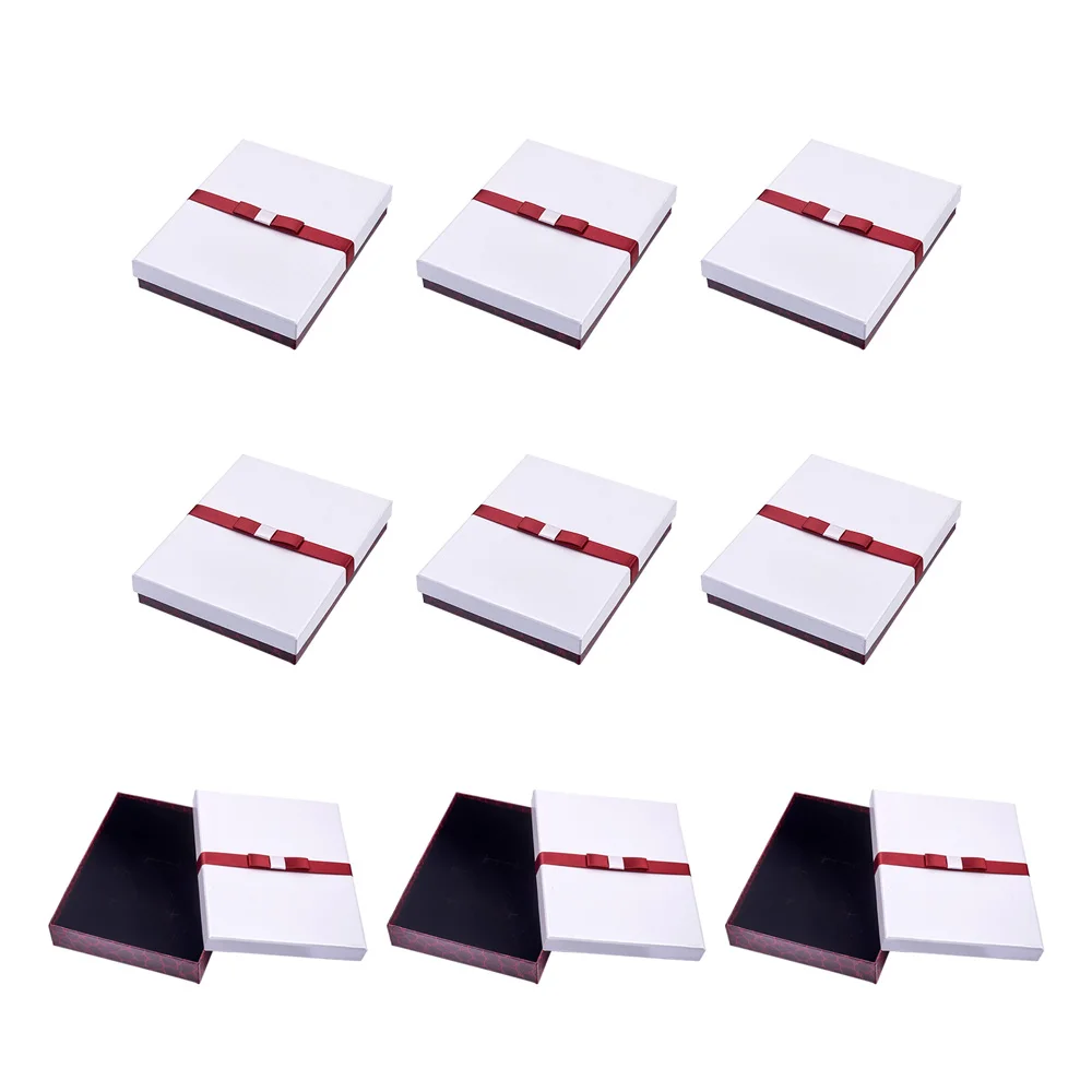Шкатулка для ювелирных изделий, картонный органайзер для ювелирных изделий, прямоугольная коробка с бантом, Подарочная коробка для хранения ожерелья, серег, колец, 10 шт.